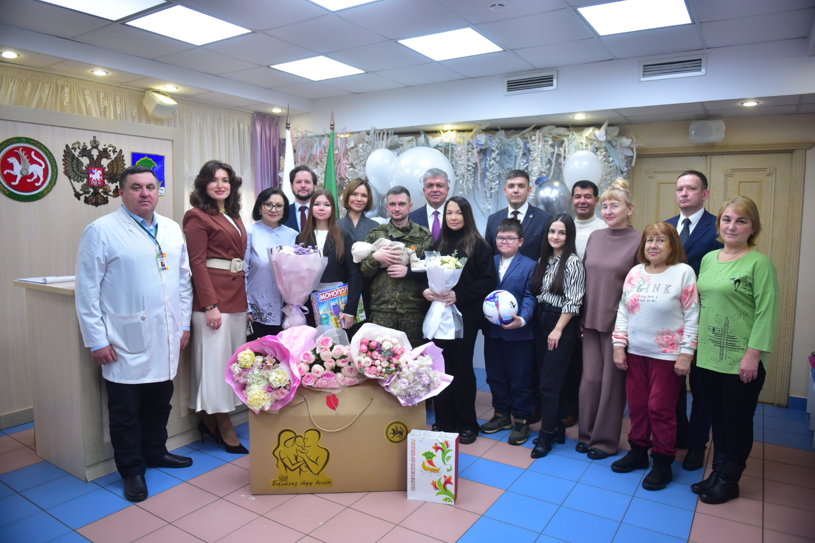 В Камском детском медицинском центре состоялась торжественная выписка новорождённого сына военнослужащего. Наиль Магдеев поздравил родителей – Эмиля Набиуллина и Кристину Лебедеву – с пополнением. Эмиль сейчас служит в зоне СВО. Счастливый отец присутствовал на выписке. Мальчик, которого родители нарекли Ратмиром, появился на свет 4 ноября. Молодой отец рассказал, что сомнений, как назвать сына, не было – имя означает «защитник мира».
