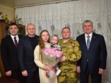 Наиль Магдеев навестил семью бойца СВО Мэр города поздравил семью с предстоящим Новым годом и вручил подарки, а также 100 тысяч рублей в связи с рождением ребенка. Пятница, 26 декабря 2025, 09:03