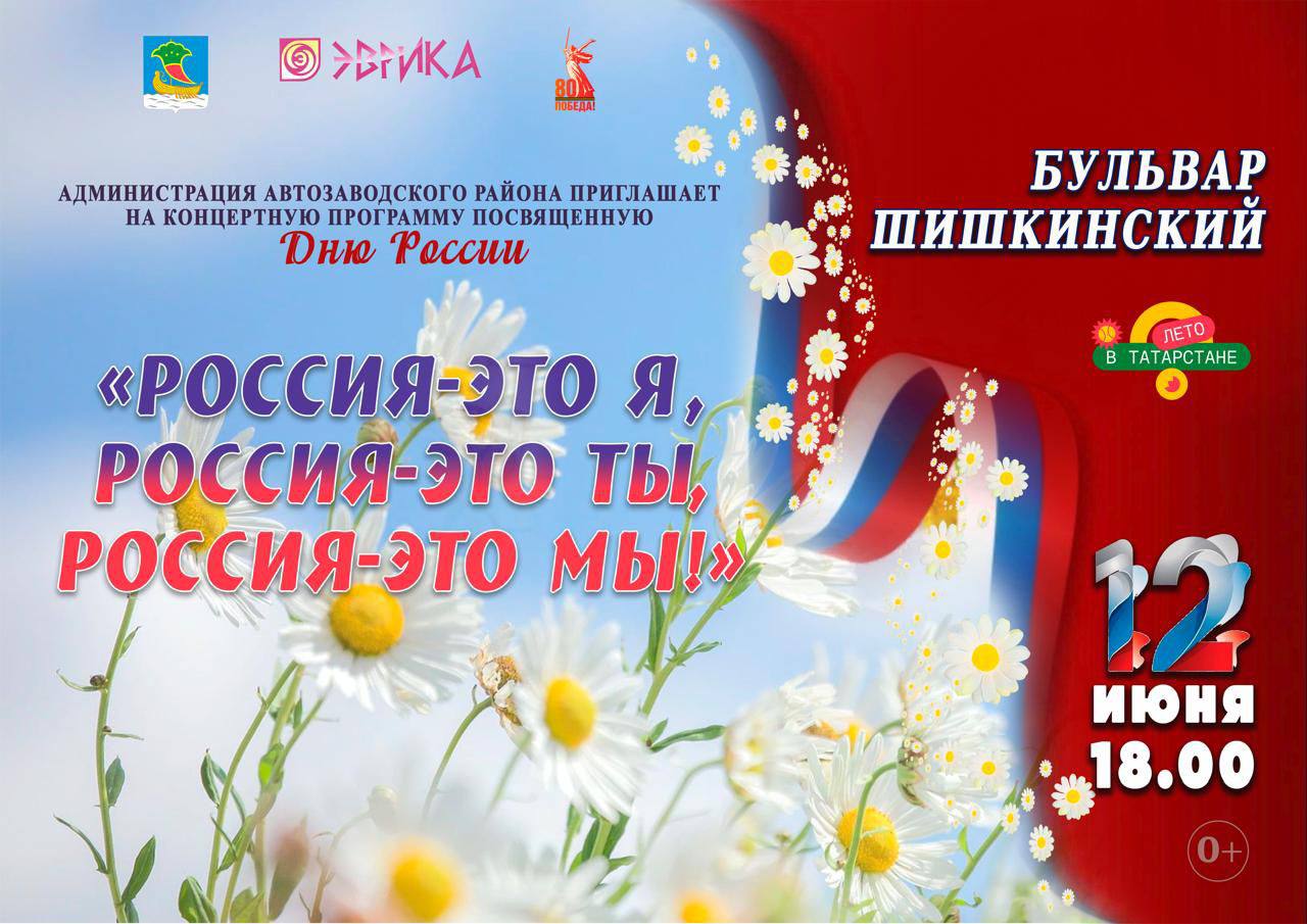 12 июнь — Россия көне. Шул уңайдан шәһәрдә төрле чаралар уздырылачак. Бәйрәм концертлары Энтузиастлар бульварында, Азатлык мәйданында, Җиңү паркында, Шишкин бульвары территориясендә уздырыла.