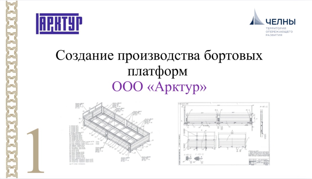 Третий проект "Арткур" предполагает объем инвестиций в размере 100 млн рублей. В Набережных Челнах планируют производить бортовые платформы. Основными потребителями такой продукции являются производители спецтехники. Грузовые платформы предназначены для транспортировки широкого спектра товаров, которые не нуждаются в соблюдении специальных температурных условий. Проект планируется запустить в 2027 году.