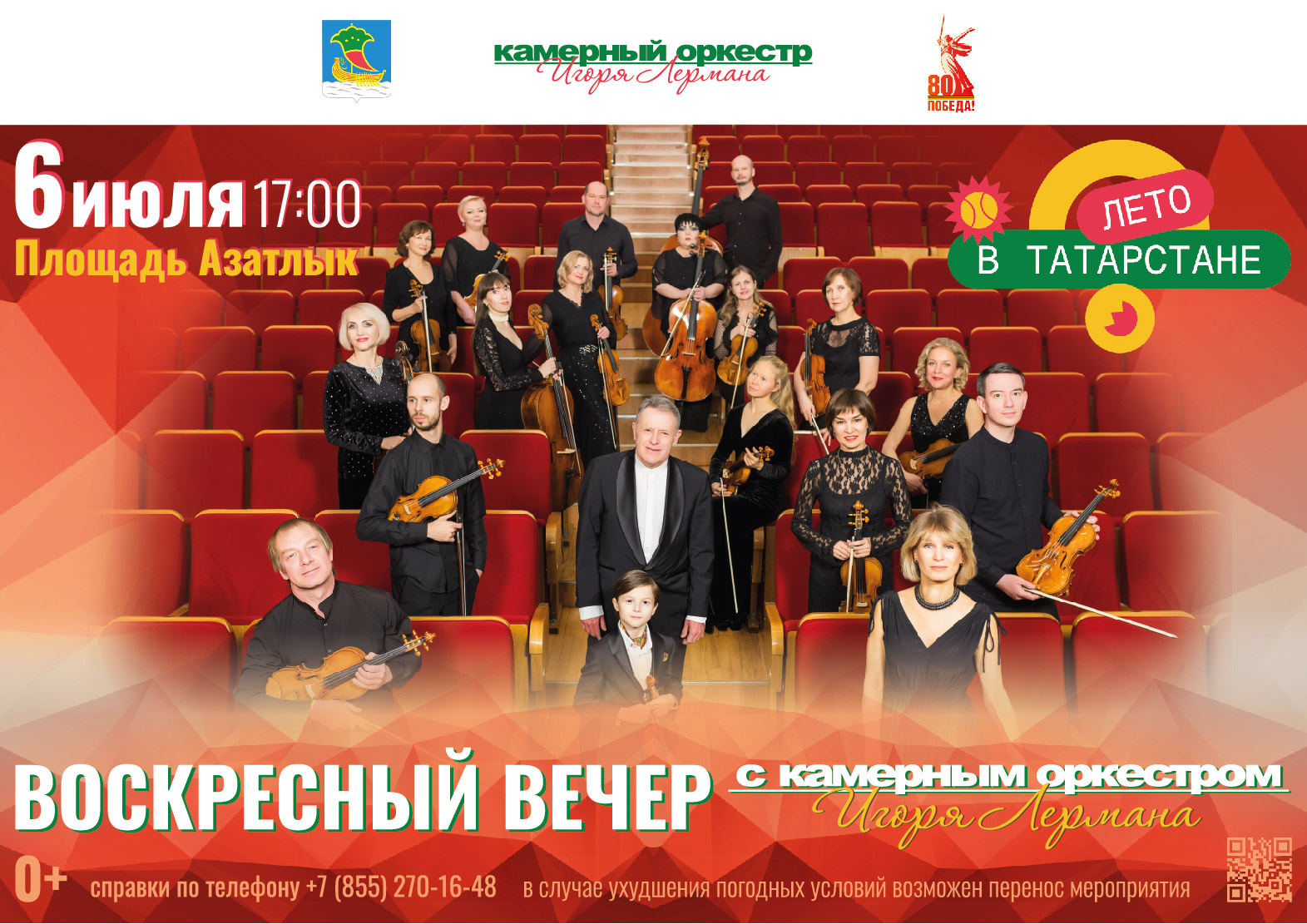 6 июльдә Азатлык мәйданында ачык һавада Игорь Лерманның камера оркестрының якшәмбе кичесе үткәрелә.Чара 17:00 сәгатьтә башлана.