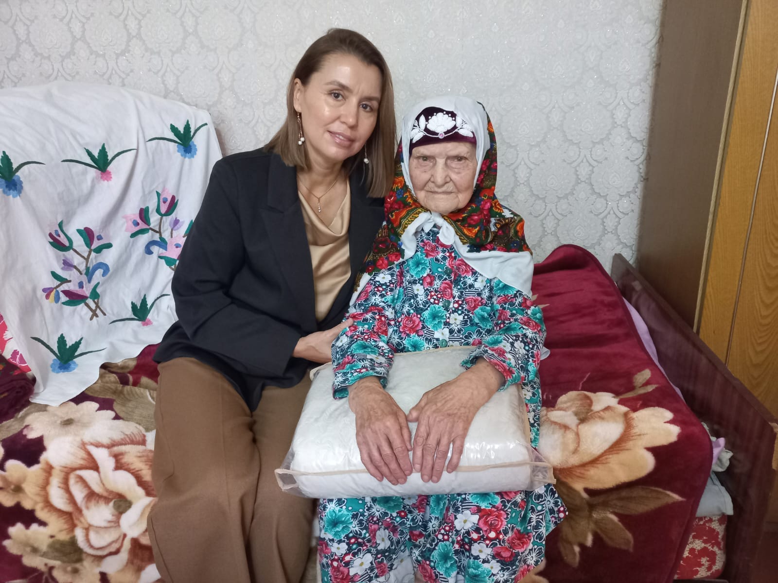 Поздравления с юбилеем от имени От имени президента РФ Владимира Путина, мэра города Наиля Магдеева, главы администрации Центрального района Искандера Галимова получили ветераны Великой Отечественной войны Минкамал Шакировна Махмутова, Набиля Хуснулловна Нуриева, Салиха Мавлявиевна Шайдуллина. К поздравлениям присоединился депутат Городского Совета Эльдар Аминов.