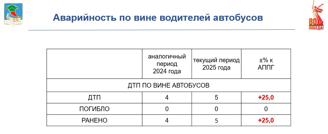 В 2025 году по вине водителей автобусов произошло пять ДТП, при которых пять человек получили ранения различной степени тяжести: в одном произошло столкновение, в другом — наезд на пешехода, в трех — упали пассажиры.