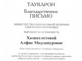 Удмуртия Республикасы белән ике арадагы күршеләрчә дус мөнәсәбәтләрне ныгытуга куйган хезмәтләре өчен Удмуртия Республикасы Милли Сәясәт министрлыгының Рәхмәт хаты белән бүләкләнде.