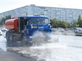 В жару поливочные машины работают в усиленном режиме, для того чтобы под воздействием транспорта не образовалась колейность дорожного полотна.