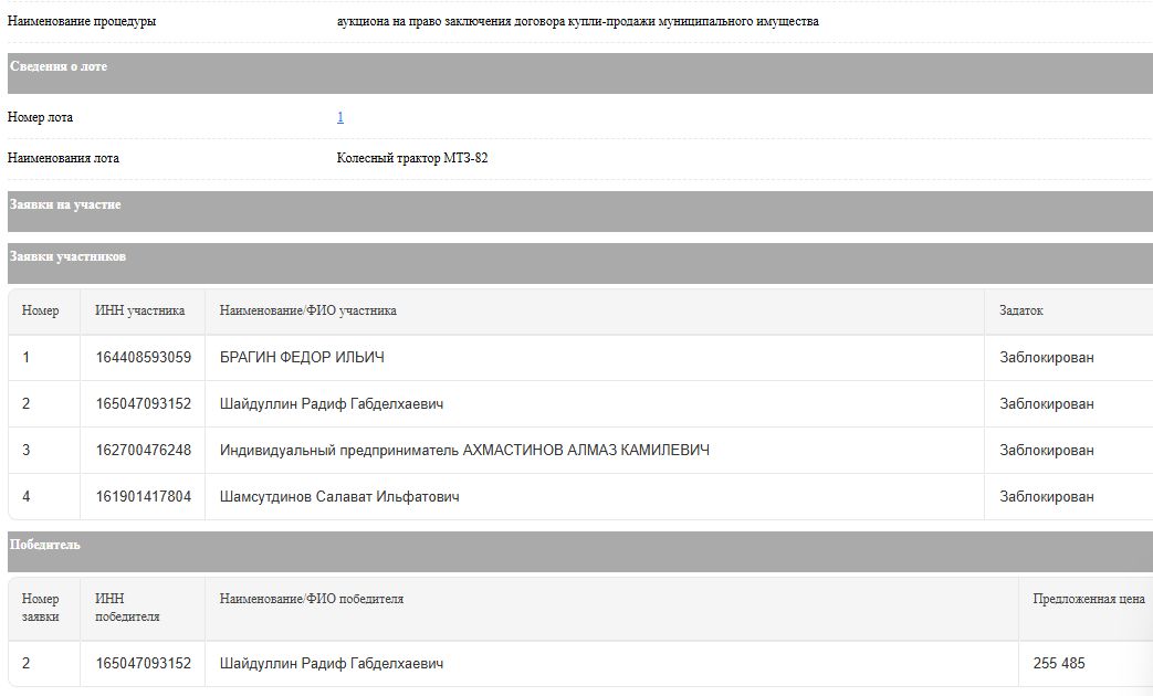 "Мәдәният һәм ял паркы" МУП милкен сату буенча электрон аукцион (махсус техника-тәгәрмәчле трактор) 20.06.2025 09.00 сәг.