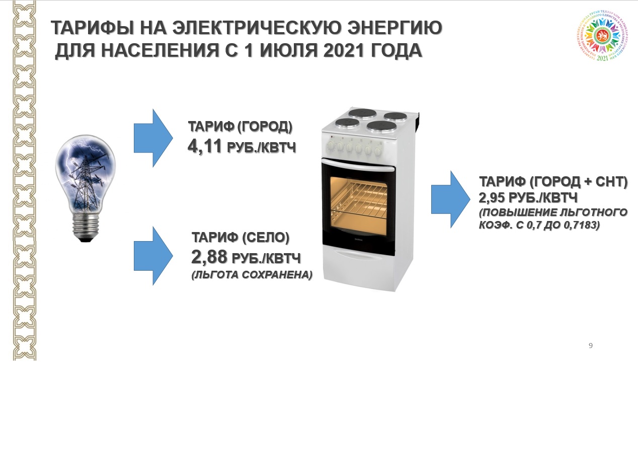 С 1 июля тариф на электроэнергию составил 4,11 руб. за 1 кВт/ч, для льготных категорий (село и садово-некоммерческие товарищества) – 2,88 руб. и 2,95 руб., соответственно.
