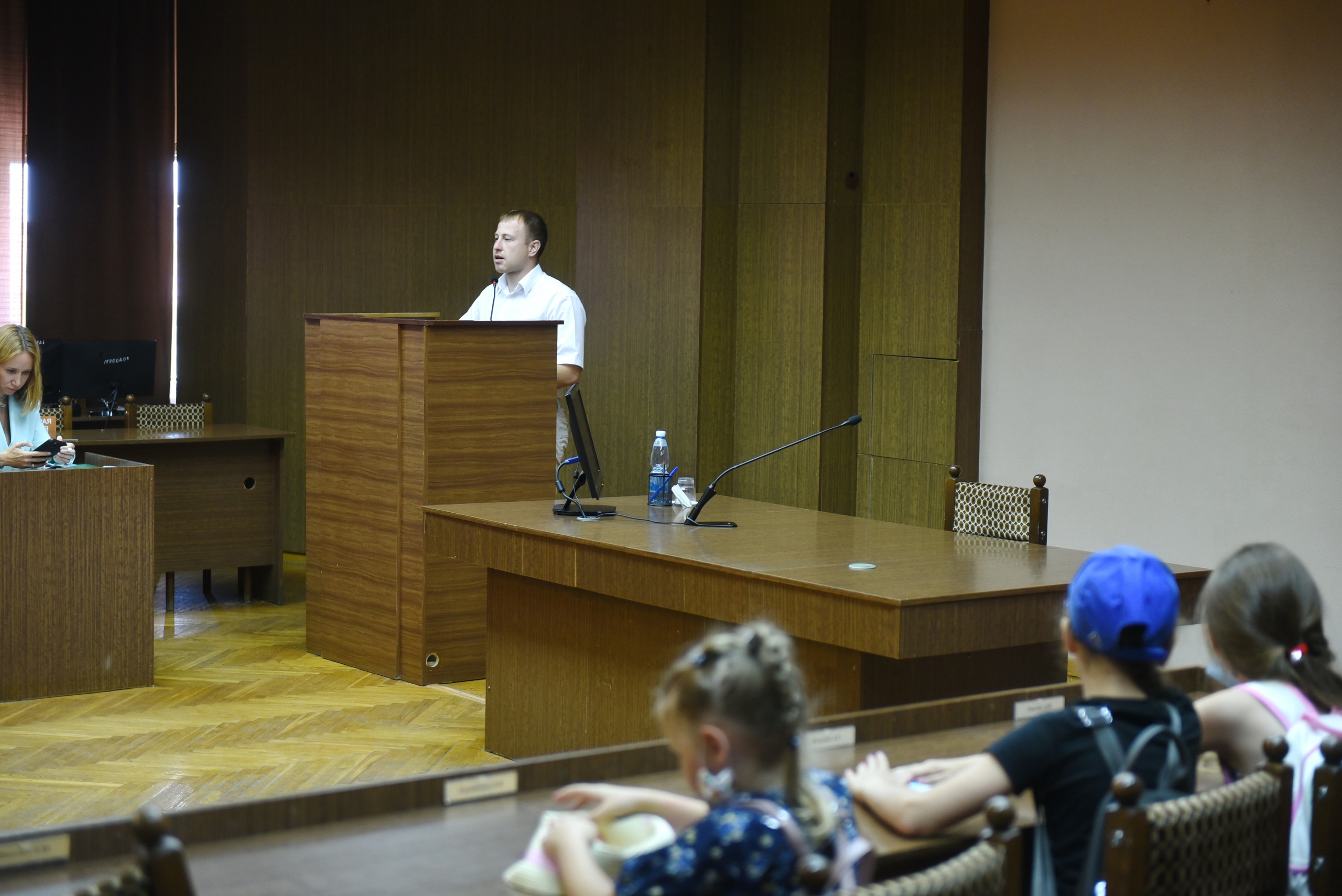 Участники лагеря также посетили зал 405, где проходят заседания Городского Совета и другие важные городские совещания. Начальник отдела по поддержке и развитию предпринимательства Айрат Сагдеев рассказал о работе управления экономики и ответил на вопросы.