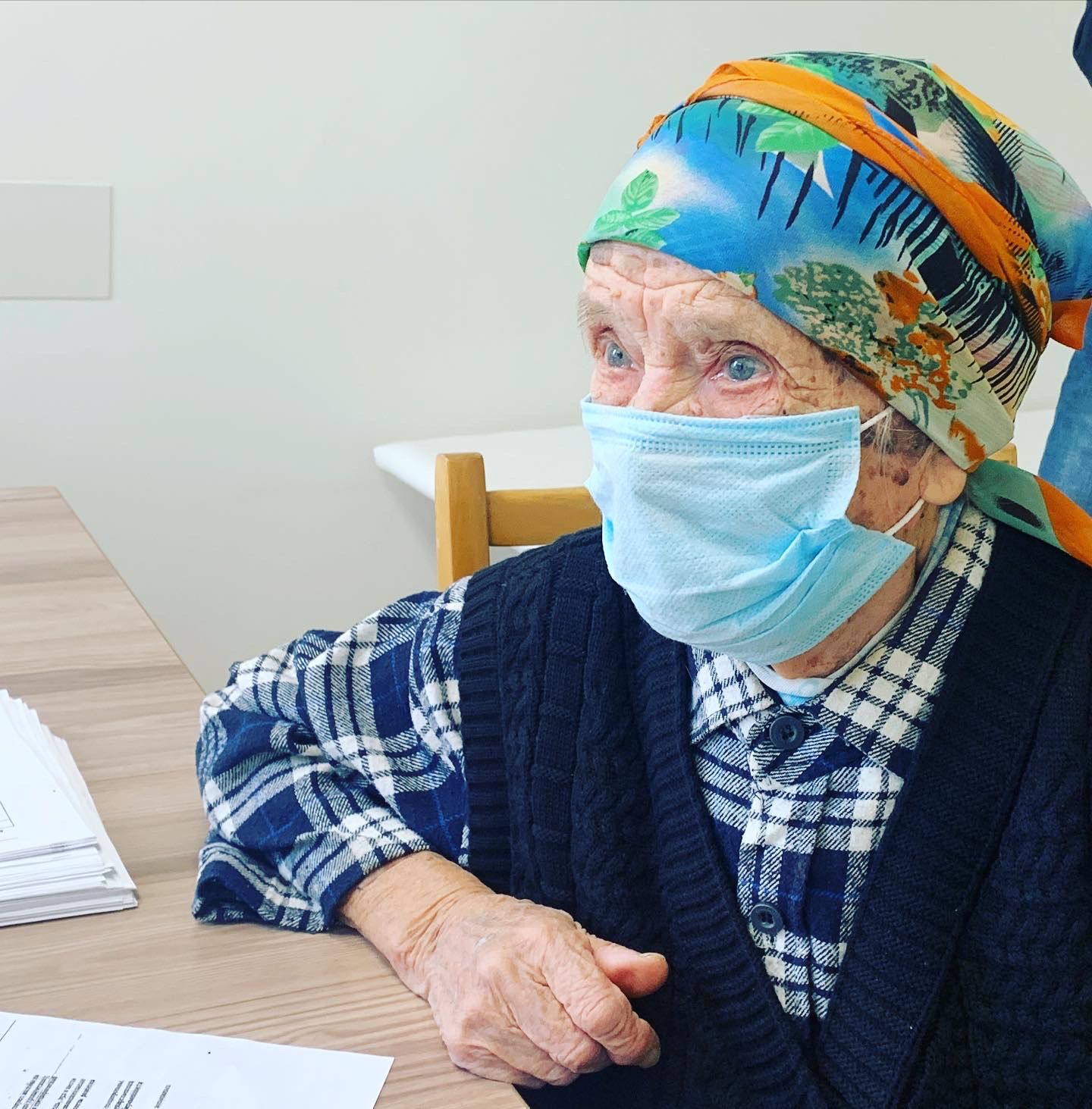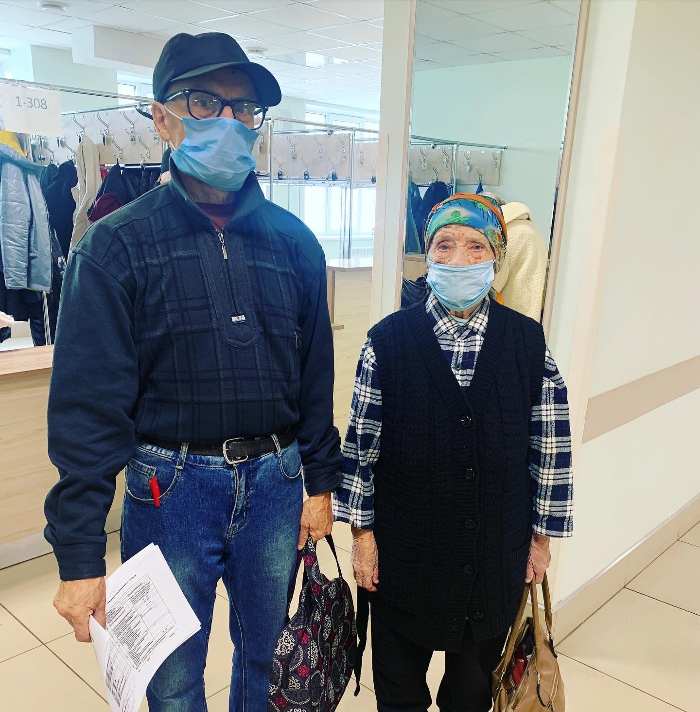 91-летняя Лидия Егоровна Красноперова - ветеран Великой Отечественной войны, труженик тыла, пришла в поликлинику №7 для повторной вакцинации вместе с сыном Александром Николаевичем.  Как и в первый раз, решение  вакцинироваться приняла сама и убедила сына: «Только так можно победить эту заразу!».