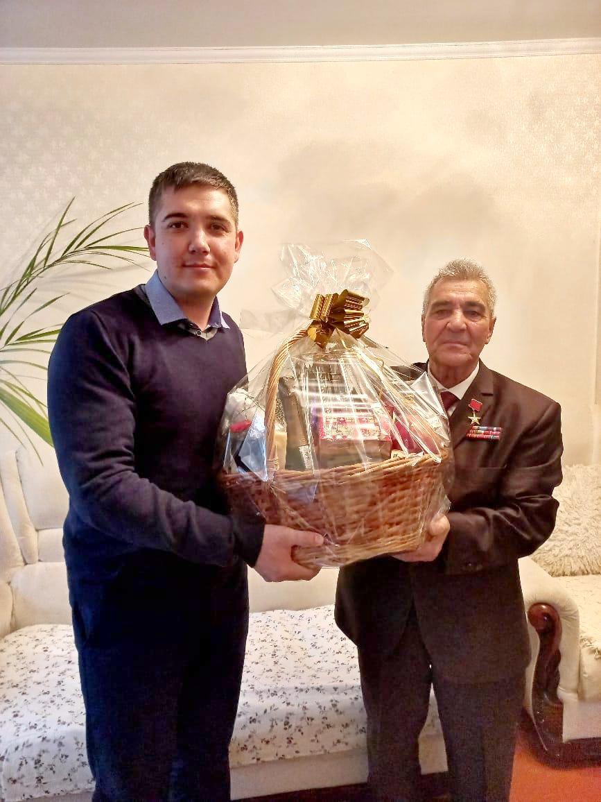 В Комсомольском районе, в день Героев Отечества, от имени мэра города Набережные Челны Наиля Магдеева и от себя лично Герою Социалистического труда Заляеву Радику Инсафовичу вручили подарок и.о. главы администрации Комсомольского района Фидарис Хабибуллин и начальник отделения (мобилизации) военного комиссариата Комсомольского района Сергей Вележев.