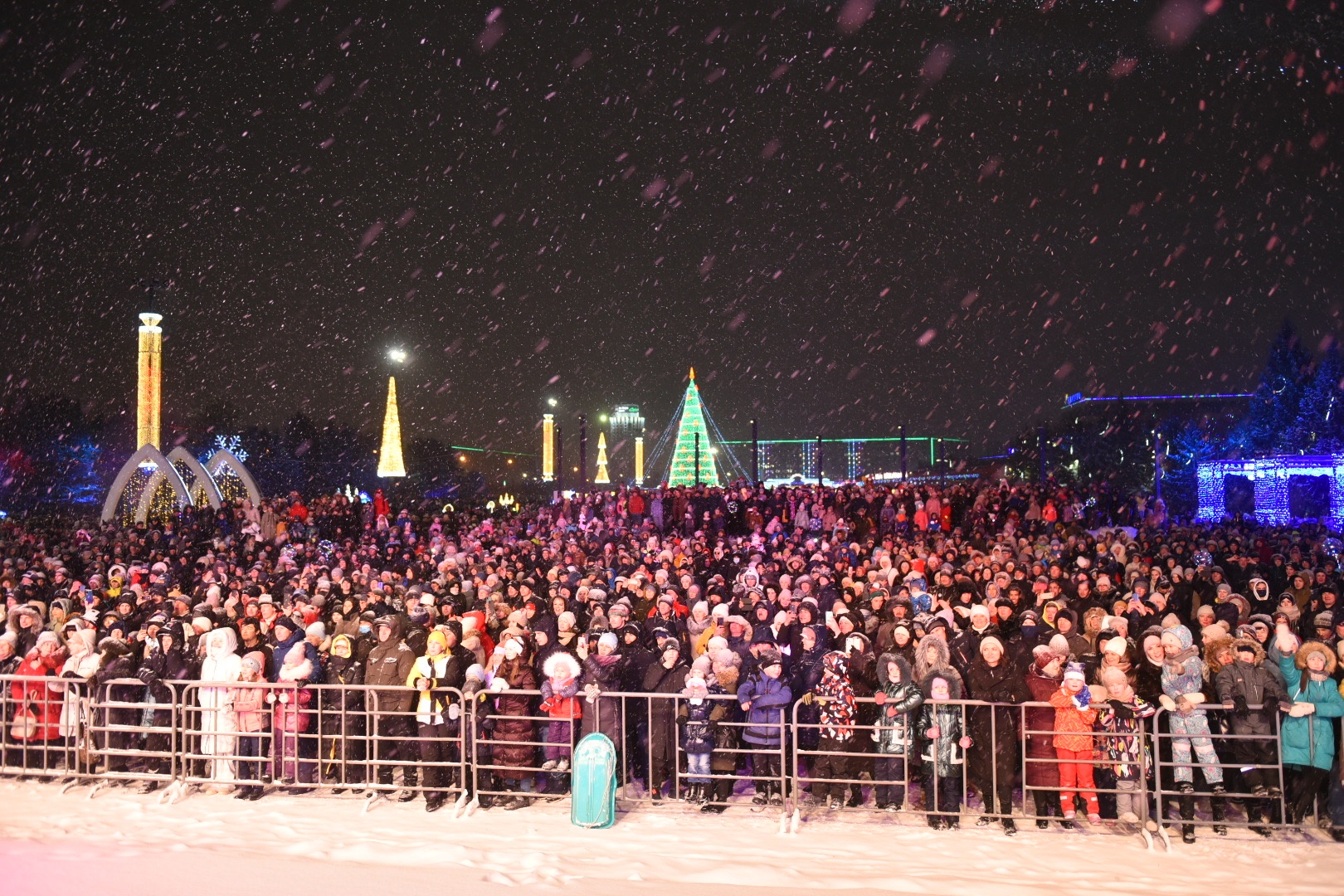 Челнинцы за несколько часов до Нового года ежегодно собираются в центре города на площади Азатлык, чтобы вместе проводить уходящий год. Праздничная программа этого года называлась «Под сиянием новогодней звезды». В ней приняли участие лучшие артисты и творческие коллективы города.
