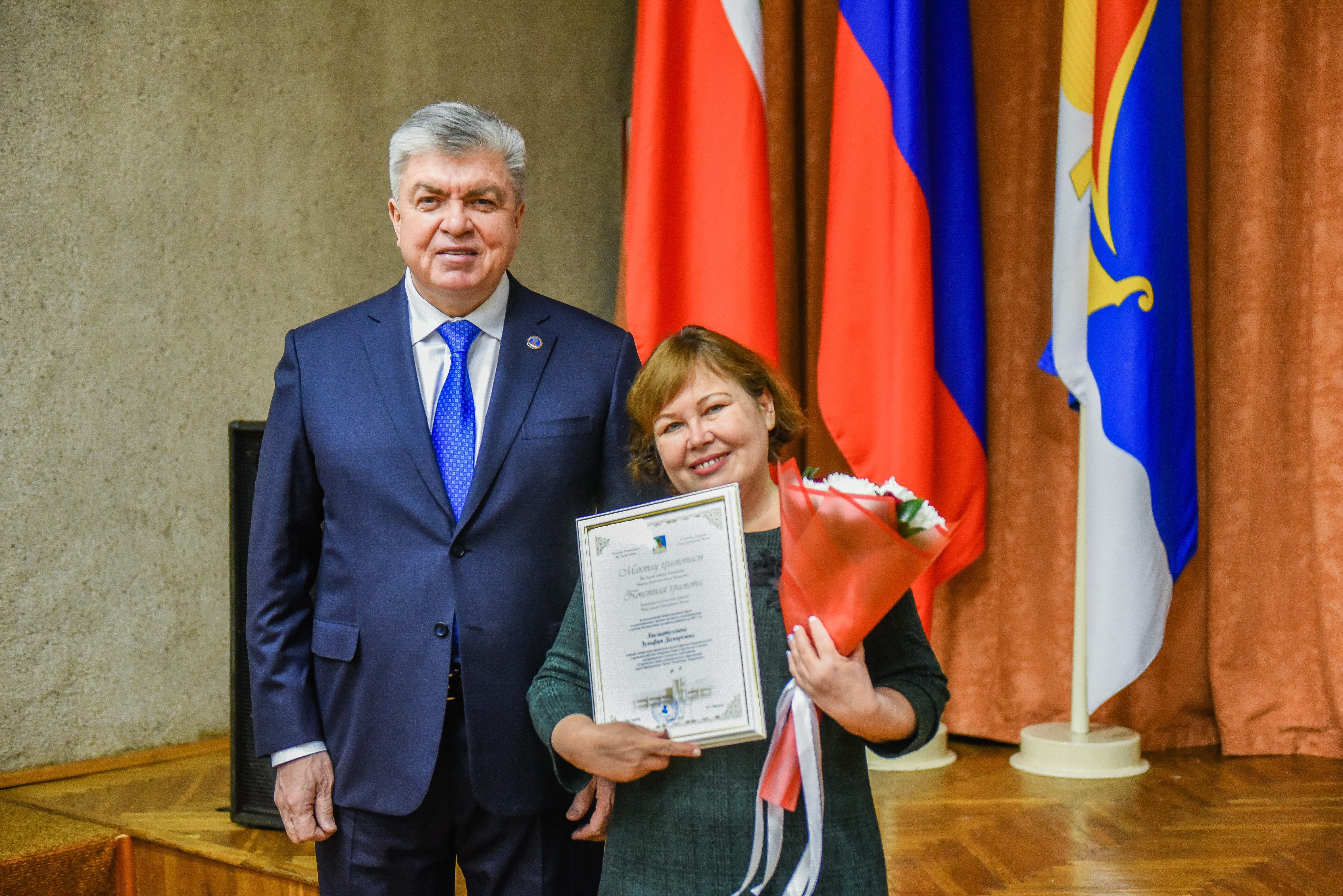 Наиль Магдеев вручил награды отличившимся сотрудникам. Почетной грамотой и благодарственными письмами награждены сотрудники управления ЗАГС, управления земельных и имущественных отношений, организационного отдела исполкома, отдела обеспечения деятельности мэра, управления культуры, управления делопроизводством, администрации районов.
