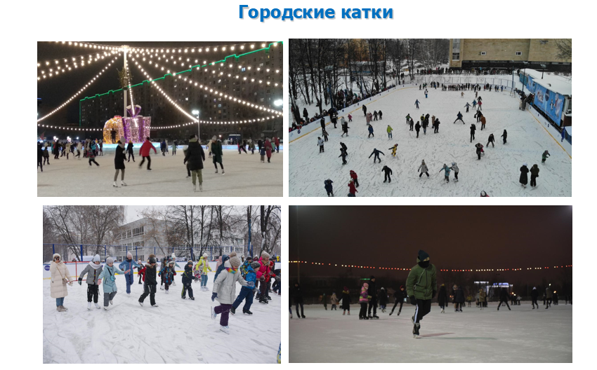 Для жителей города организованы катки массового катания, которые расположены: на городском «Ипподроме», площади «Азатлык», городском «Майдане», катке «Медео», в жилом микрорайоне «Замелекесье».