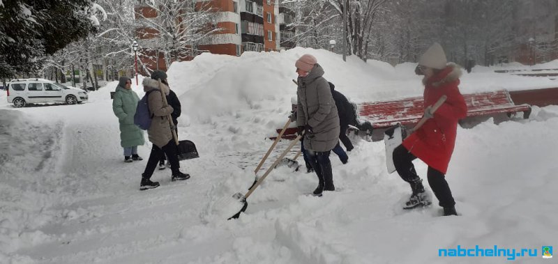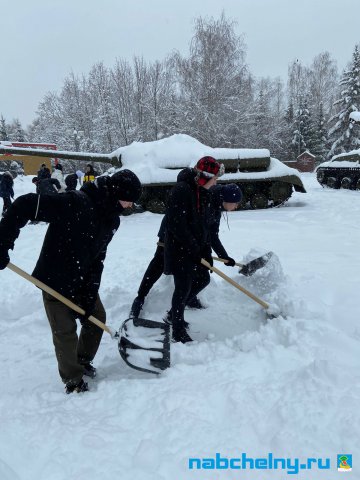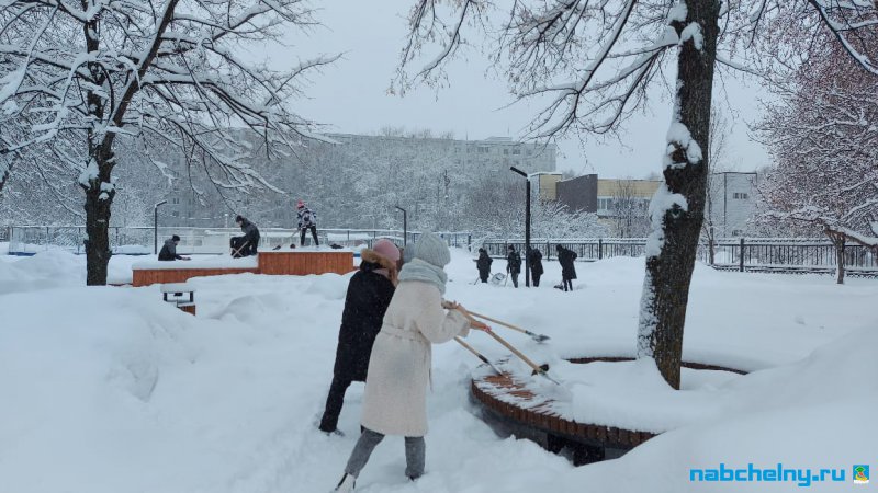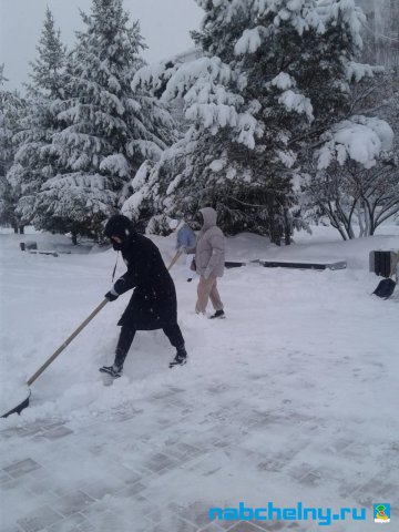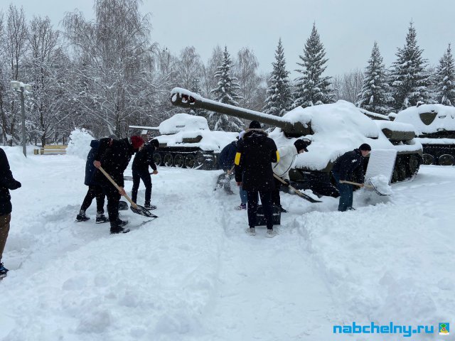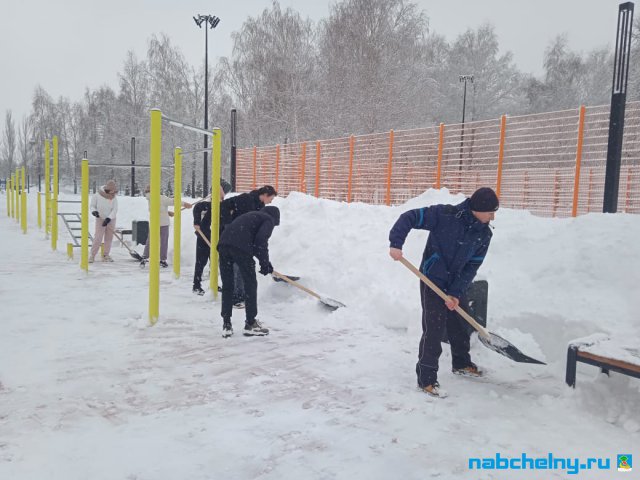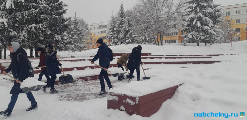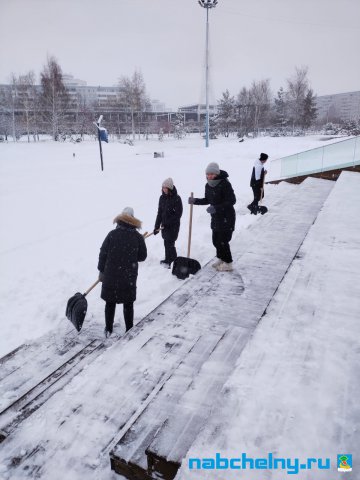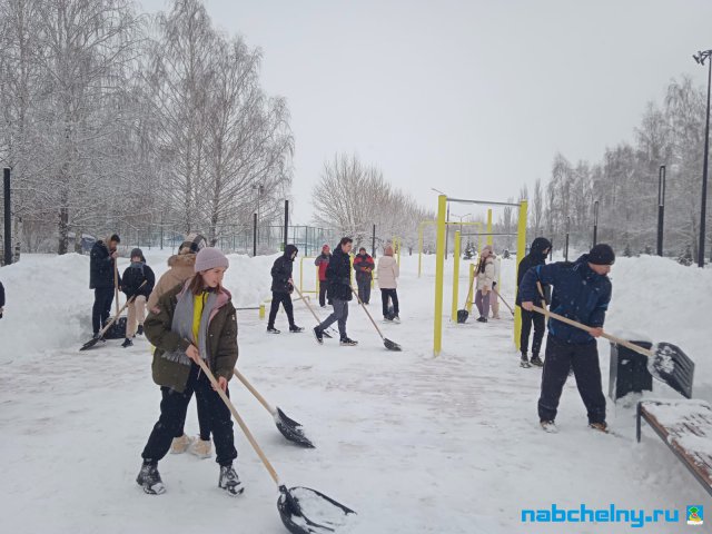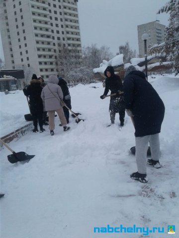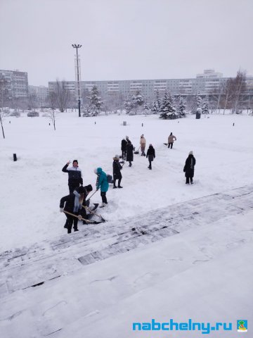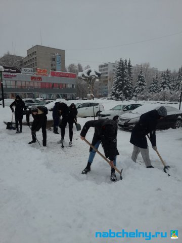 Учащиеся СОШ № 35, Набережночелнинского медицинского колледжа, ГАПОУ "Набережночелнинского политехнического колледжа", "Набережночелнинского Технологического техникума", Набережночелнинкого филиала КИУ участвуют в работах по очистке от снега площади Азатлык, парка Гренада, бульвара Энтузиастов, бульвара 60-летия Октября.