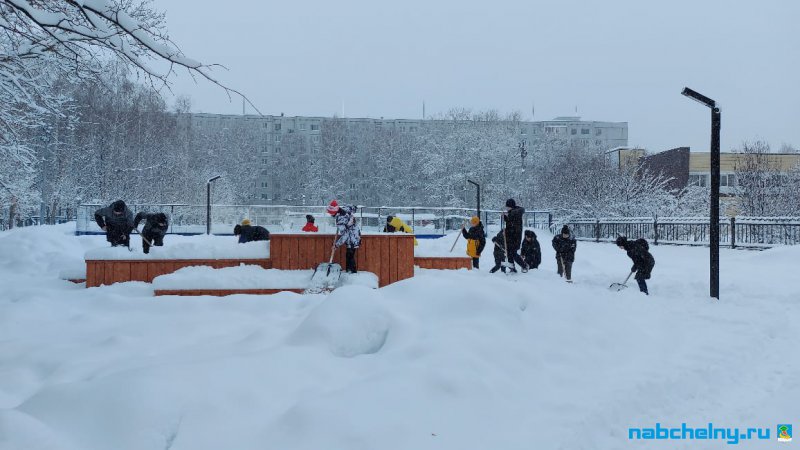 Студенты Камского строительного колледжа им. Е.Н.Батенчука произвели очистку от снега детской площадки в парке "Сидоровка".