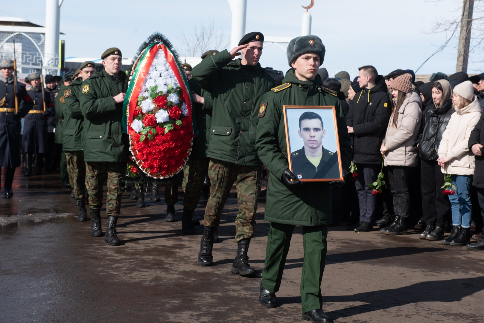 В последний путь военнослужащего Артура Шарафеева проводили под оружейные залпы