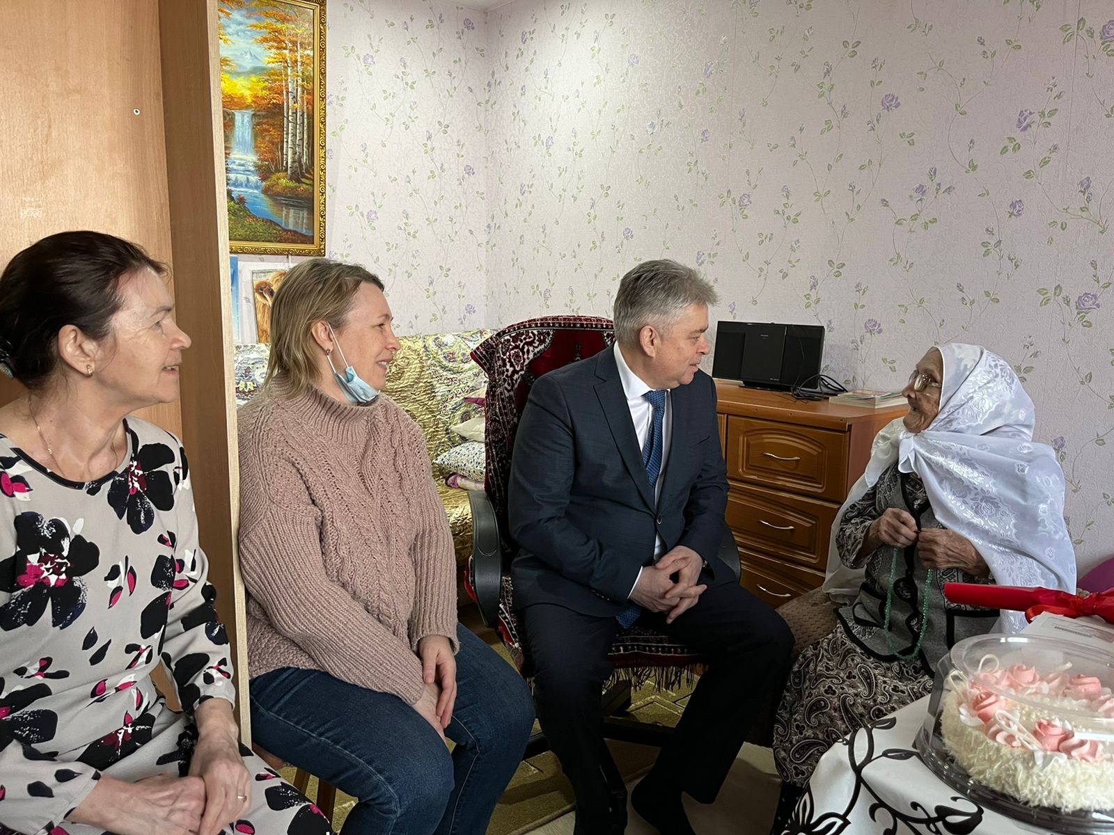 От имени Президента Российской Федерации Владимира Путина и мэра города Наиля Магдеева юбиляра поздравили глава администрации Автозаводского района Винер Харисов. К поздравлениям присоединилась  председатель ТОС «Уютный» Марина Залялиева.