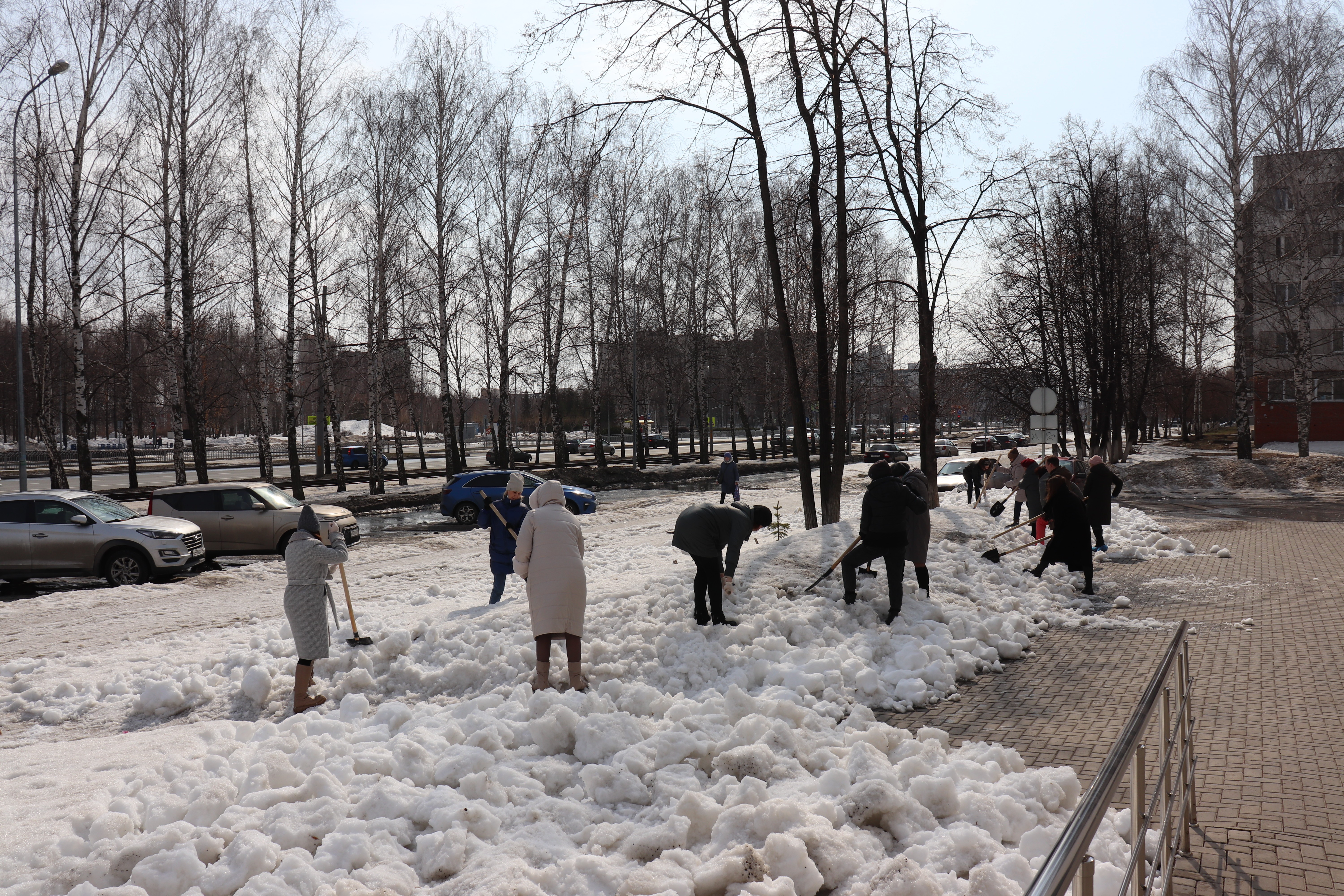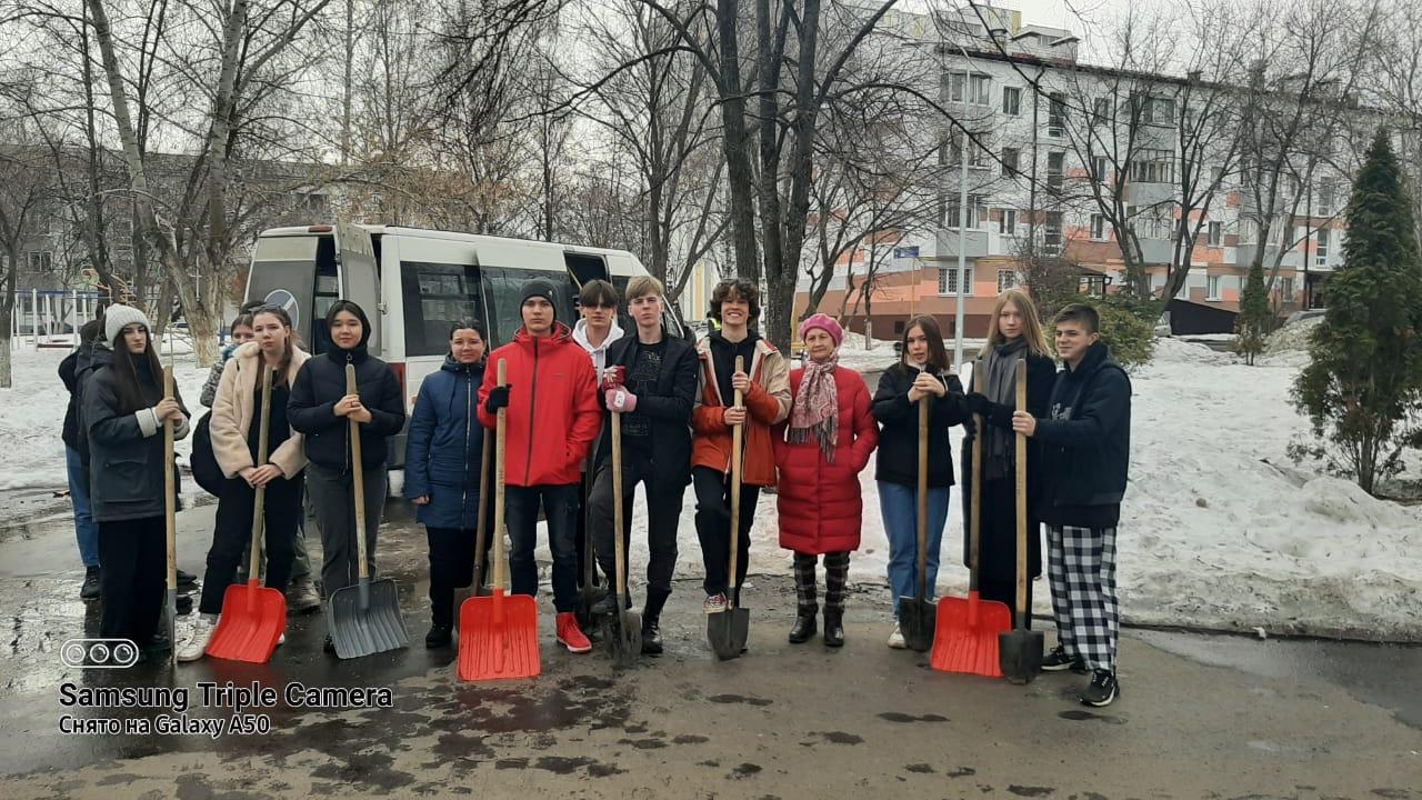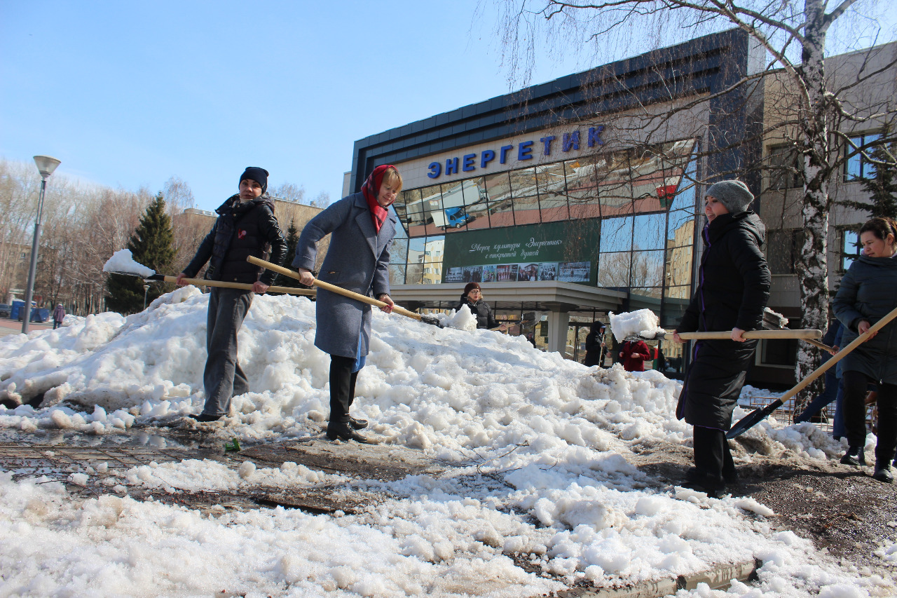 В ходе субботника на территории Центрального района провели уборку и рыхление снега учащиеся СОШ №13 на бульваре Энтузиастов.
