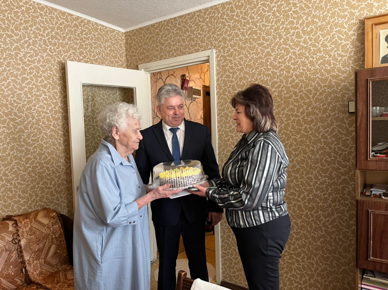 Магдеева юбиляра поздравил глава Автозаводского района Винер Харисов. К поздравлениям присоединилась председатель ТОС «Солнечный»