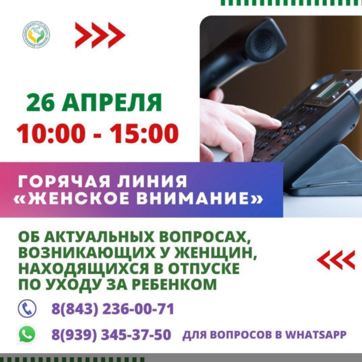 Члены объединения женщин-депутатов Государственного Совета Республики Татарстан «Мәрхәмәт-Милосердие» совместно с Уполномоченным по правам человека в РТ проведут телефонную горячую линию «Женское внимание» и ответят на актуальные вопросы, возникающие у женщин, находящихся в отпуске по уходу за ребенком.
