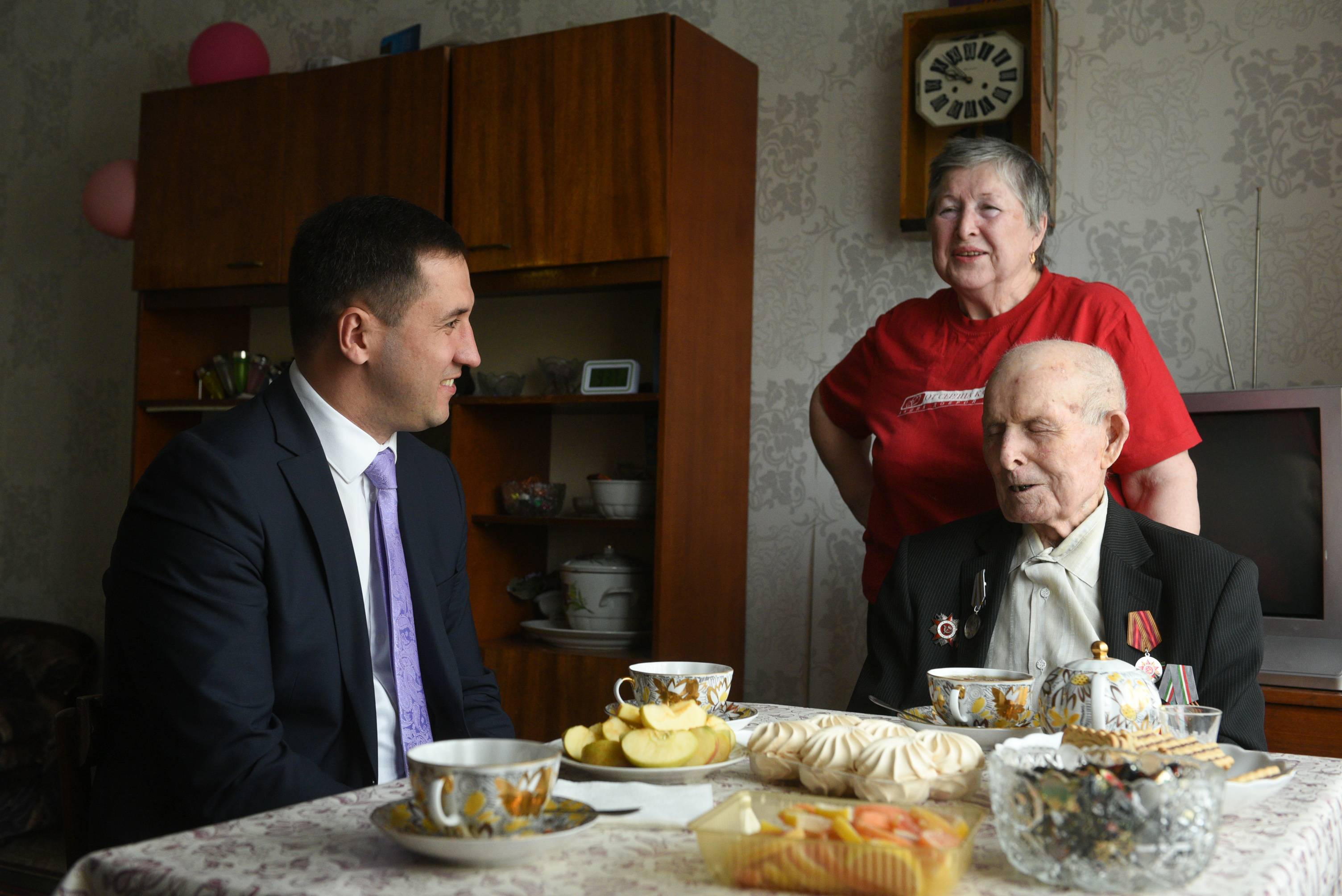 Фарид Салахов тепло поздравил с наступающим праздником 97-летнего ветерана и пожелал здоровья.