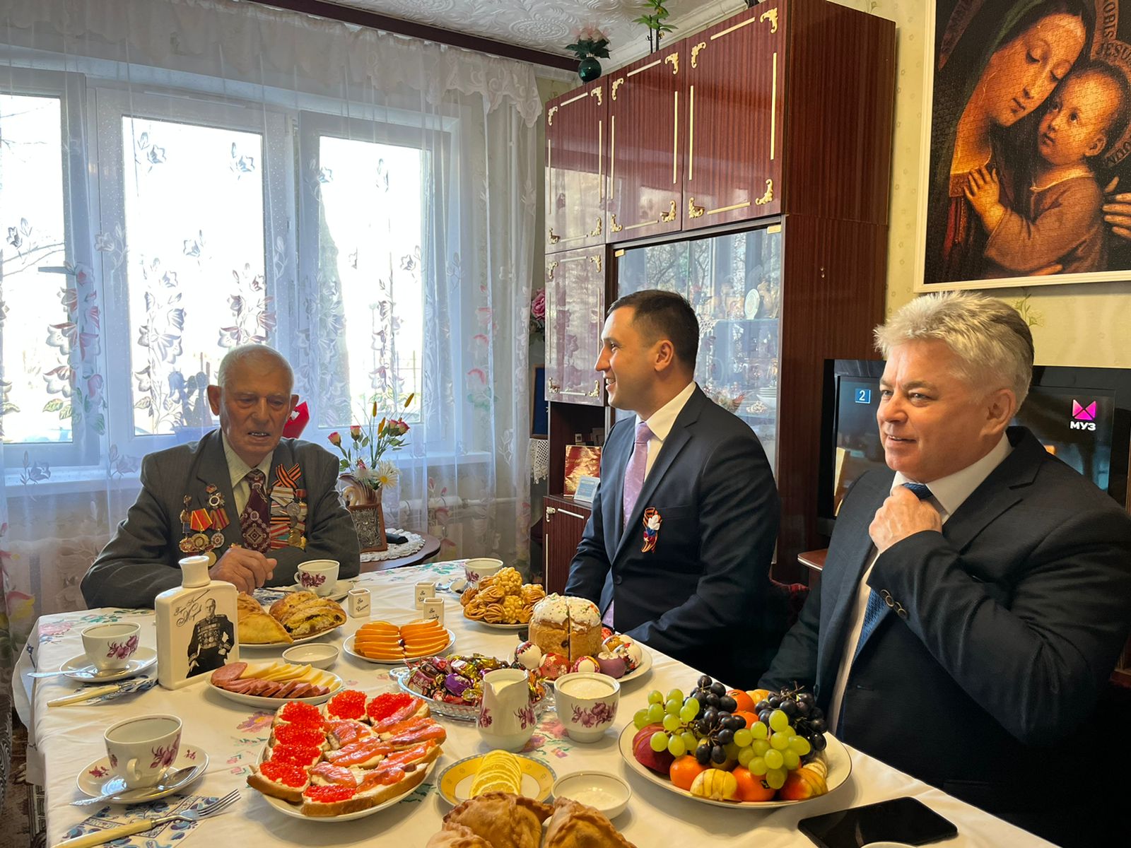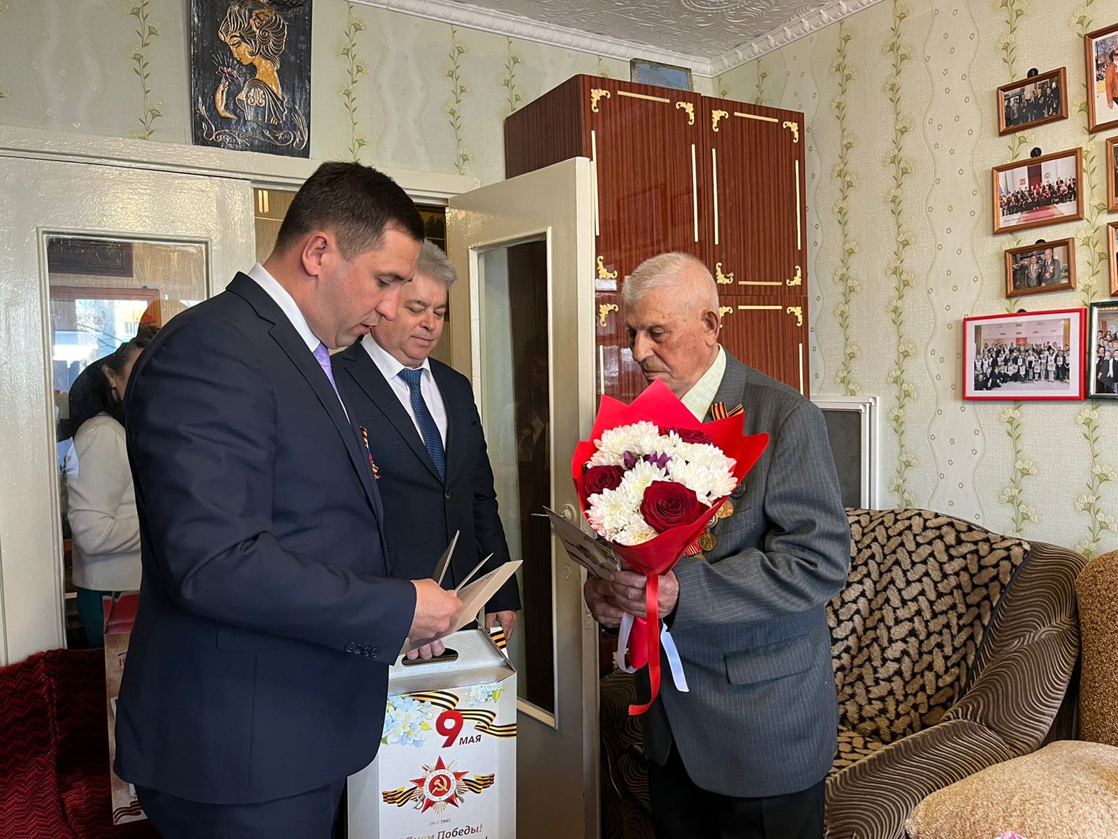 Он сердечно поздравил ветерана с наступающим Днем Победы, пожелал крепкого здоровья, оптимизма, бодрости духа, долгих лет жизни. Ветеран в свою очередь приветливо встретил гостей, делился воспоминаниями о войне и своей жизни.