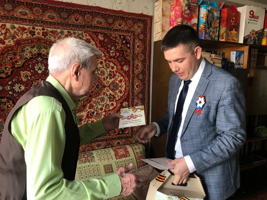 В Комсомольском районе продолжается активная работа по подготовке к празднованию 77-й годовщины Победы в Великой Отечественной войне. В преддверии Дня Победы организовано вручение подарков от имени Президента Республики Татарстан Рустама Минниханова и мэра города Наиля Магдеева. Сегодня и.о главы администрации Комсомольского района Фидарис Хабибуллин и Депутат Городского Совета Рубин Бадиков вручили подарок Участнику Великой Отечественной войны Валерию Михайловичу Колпскому.