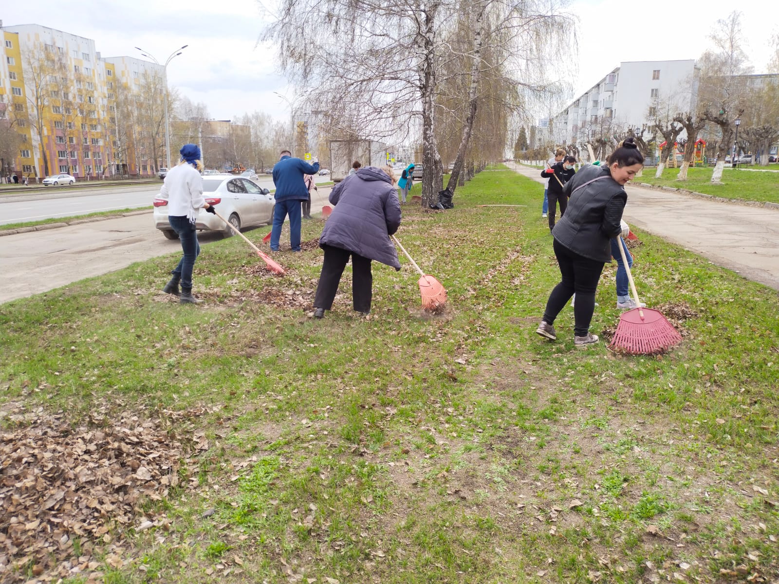ООО УК «Камстройсервис» собрали листву и произвели грабление по пр.Чулман по разделительной полосе от пр.Автозаводский до пр.Яшьлек.