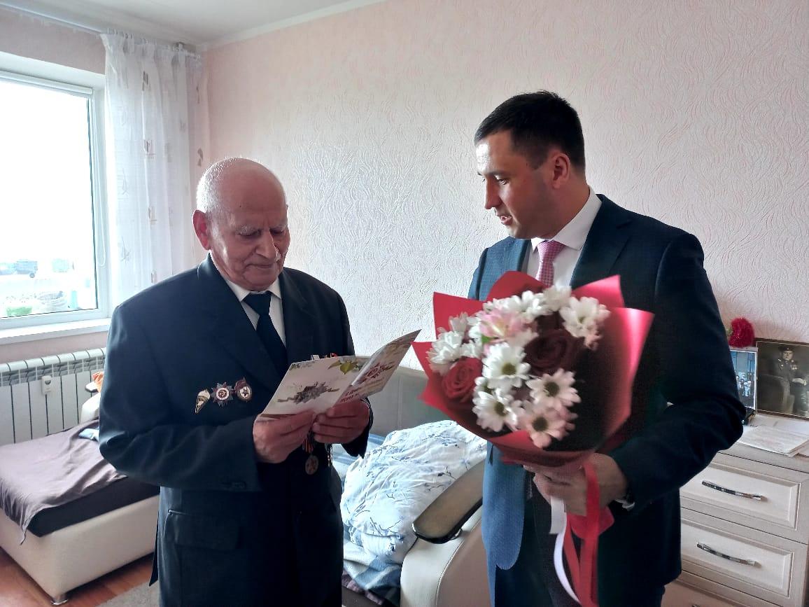 В преддверии Дня Победы в Комсомольском районе организовано вручение подарков от имени Президента Республики Татарстан Рустама Минниханова и мэра города Наиля Магдеева. Сегодня руководитель Исполнительного комитета Фарид Салахов, и о. главы администрации Комсомольского района Фидарис Хабибуллин и начальник отдела военного комиссариата РТ по Комсомольскому району г. Набережные Челны и Тукаевскому району Дамир Валиев вручили подарок участнику Великой Отечественной войны Муфтаху Ансаповичу Нуртдинову.