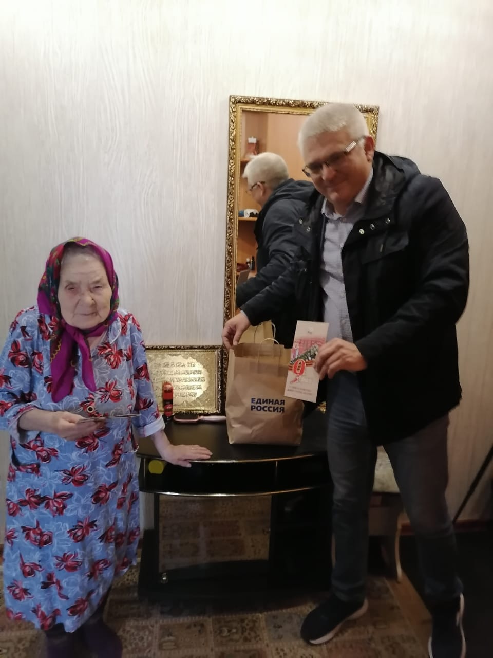 Труженики тыла Александра Александровна Репина, Николай Михайлович Алымов, Халима Махмутовна Бильданова, Фаина Ивановна Градобоева от имени Президента Республики Татарстан Рустама Минниханова и мэра города Наиля Магдеева получили поздравительные открытки и продуктовые наборы. Депутат пожелал ветеранам крепкого здоровья, благополучия и праздничного настроения.