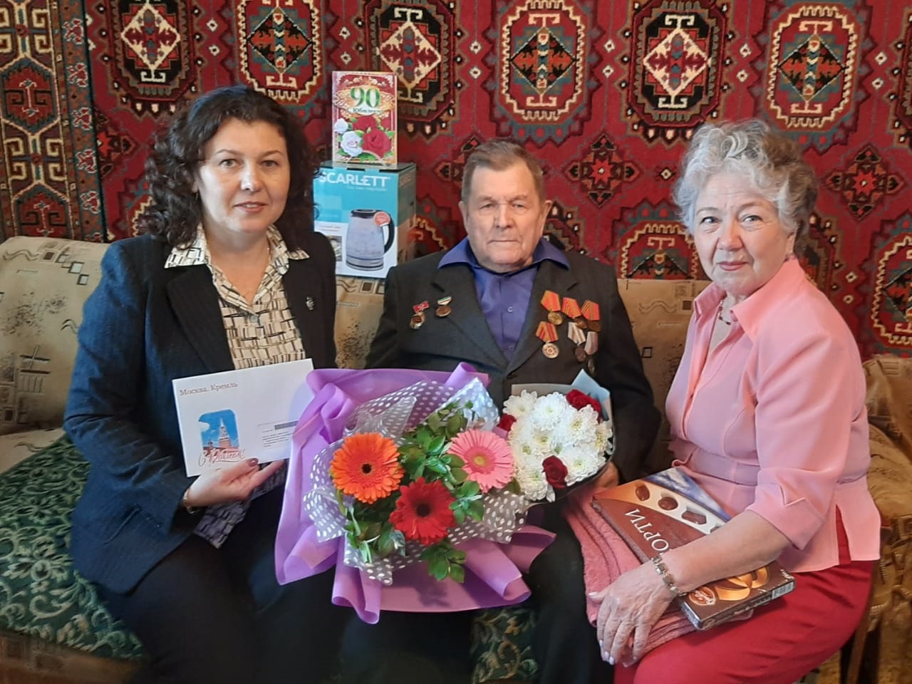 В Комсомольском районе 90-летний юбилей со дня рождения отмечает ветеран Великой Отечественной войны Федор Иванович Панин. Поздравления и подарки от имени Президента РФ Владимира Путина, мэра города Наиля Магдеева от имени депутата Государственного Совета Марселя Мингалимова вручила и.о. заместителя главы администрации Комсомольского района Алсу Хамматова.