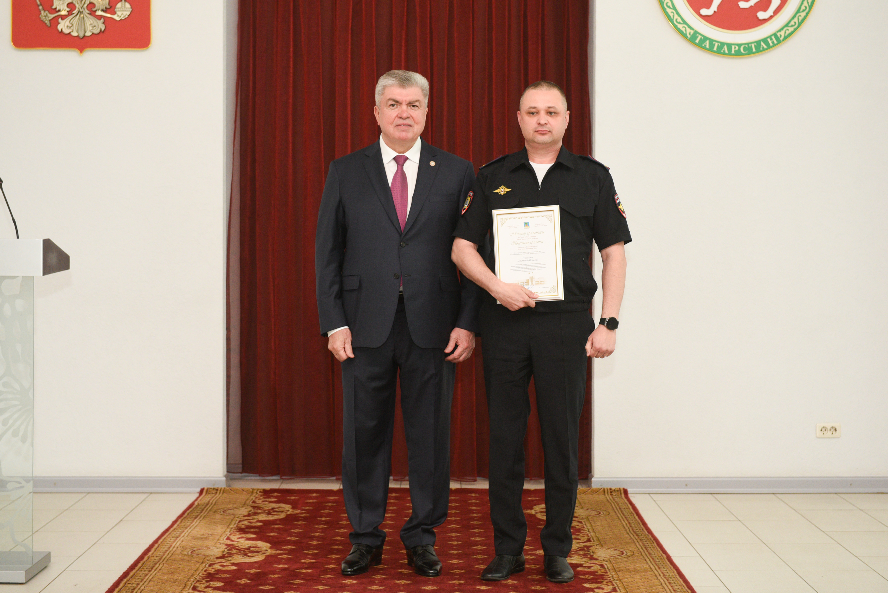 За безупречную службу в органах внутренних дел, большой личный вклад в укрепление законности и правопорядка Почетной грамотой мэра города награжден заместитель начальника филиала Всероссийского института повышения квалификации сотрудников министерства внутренних дел Российской Федерации г. Набережные Челны Дмитрий Николаев.