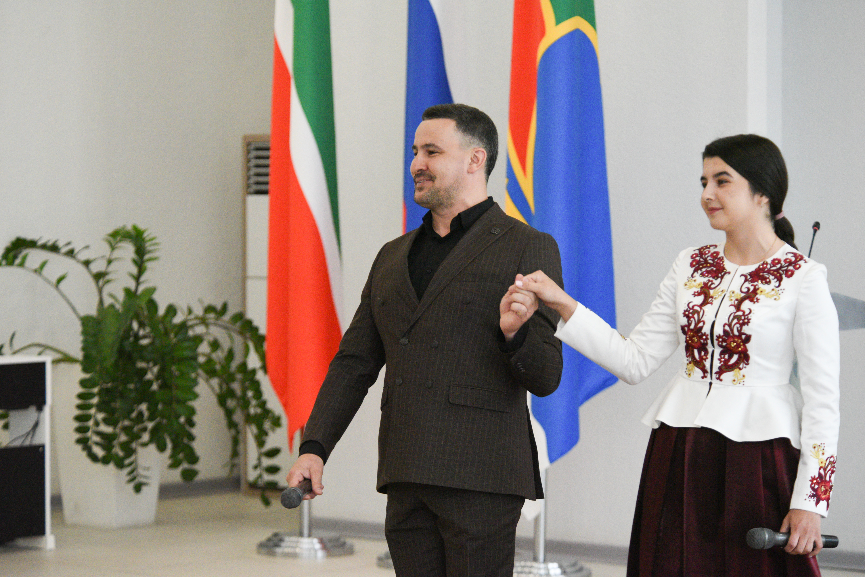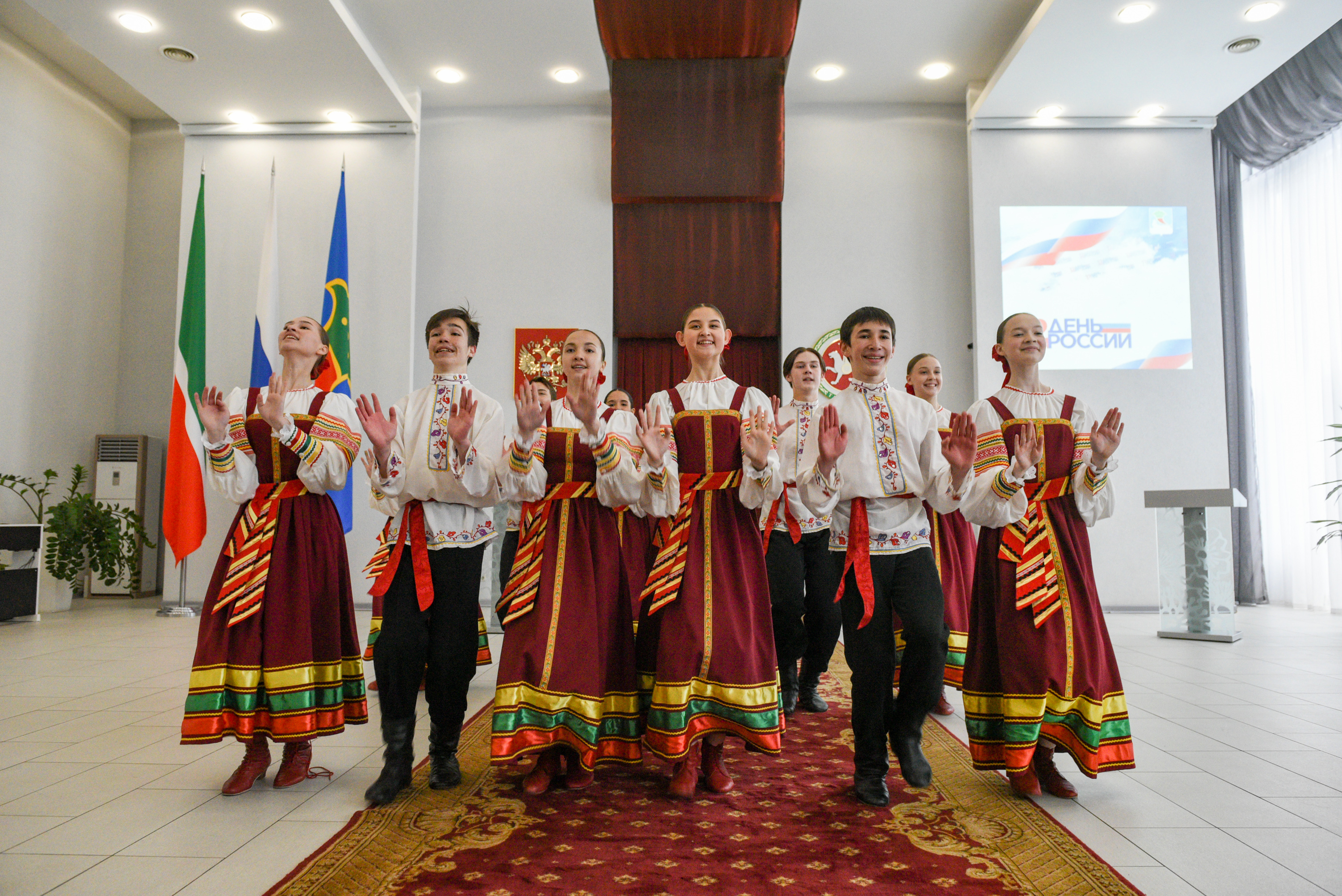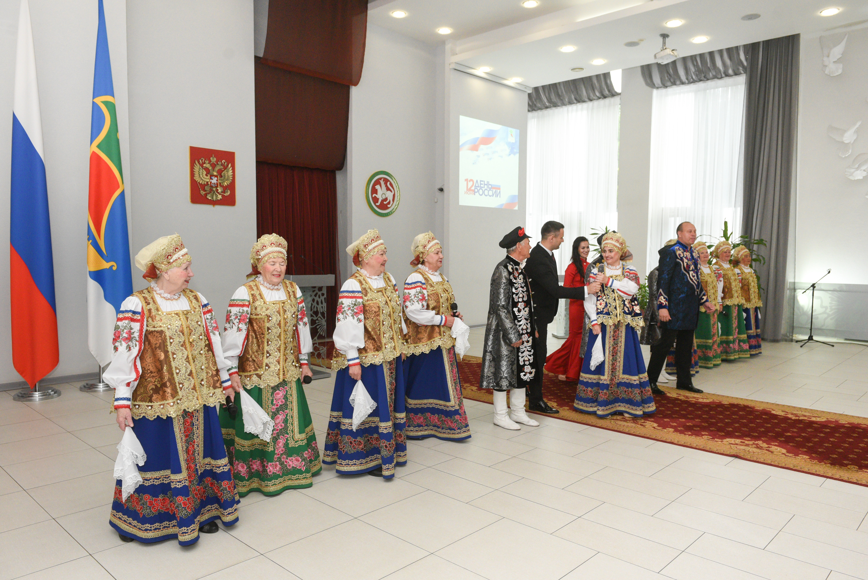 Перед гостями выступили Нияз Хаматшин, Айзиля Вахитова, Олеся Шимон, вокальный ансамбль «Вольница» и ансамбль танца «Татарстан».