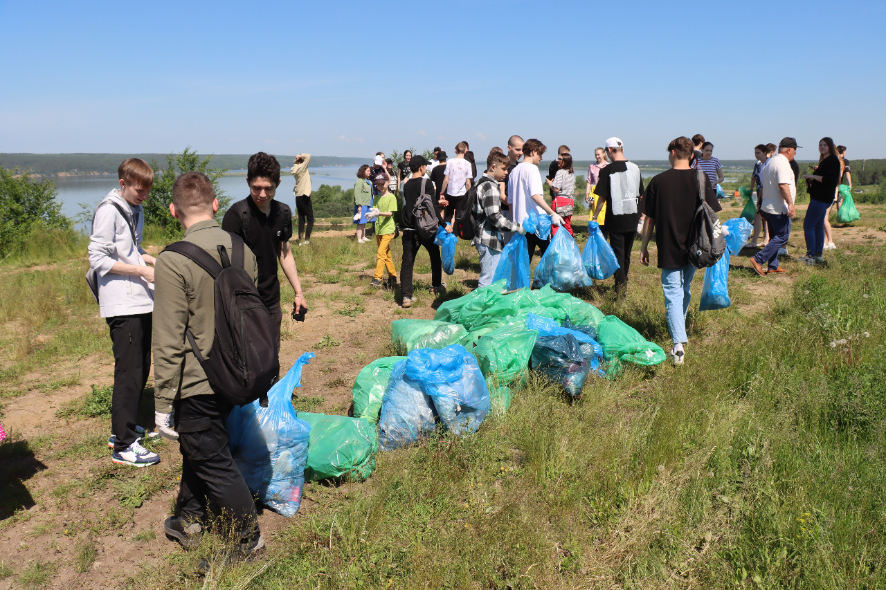 Общими усилиями было собрано более 100 мешков мусора - старые покрышки, стекло, картонные коробки, пластик и многое другое.