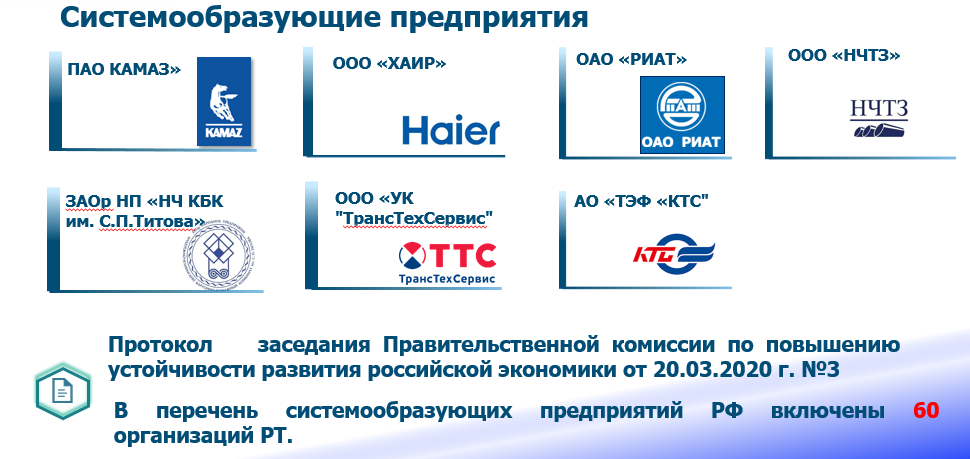 сегодняшний день 7 предприятий Набережных Челнов вошли в федеральный реестр системообразующих