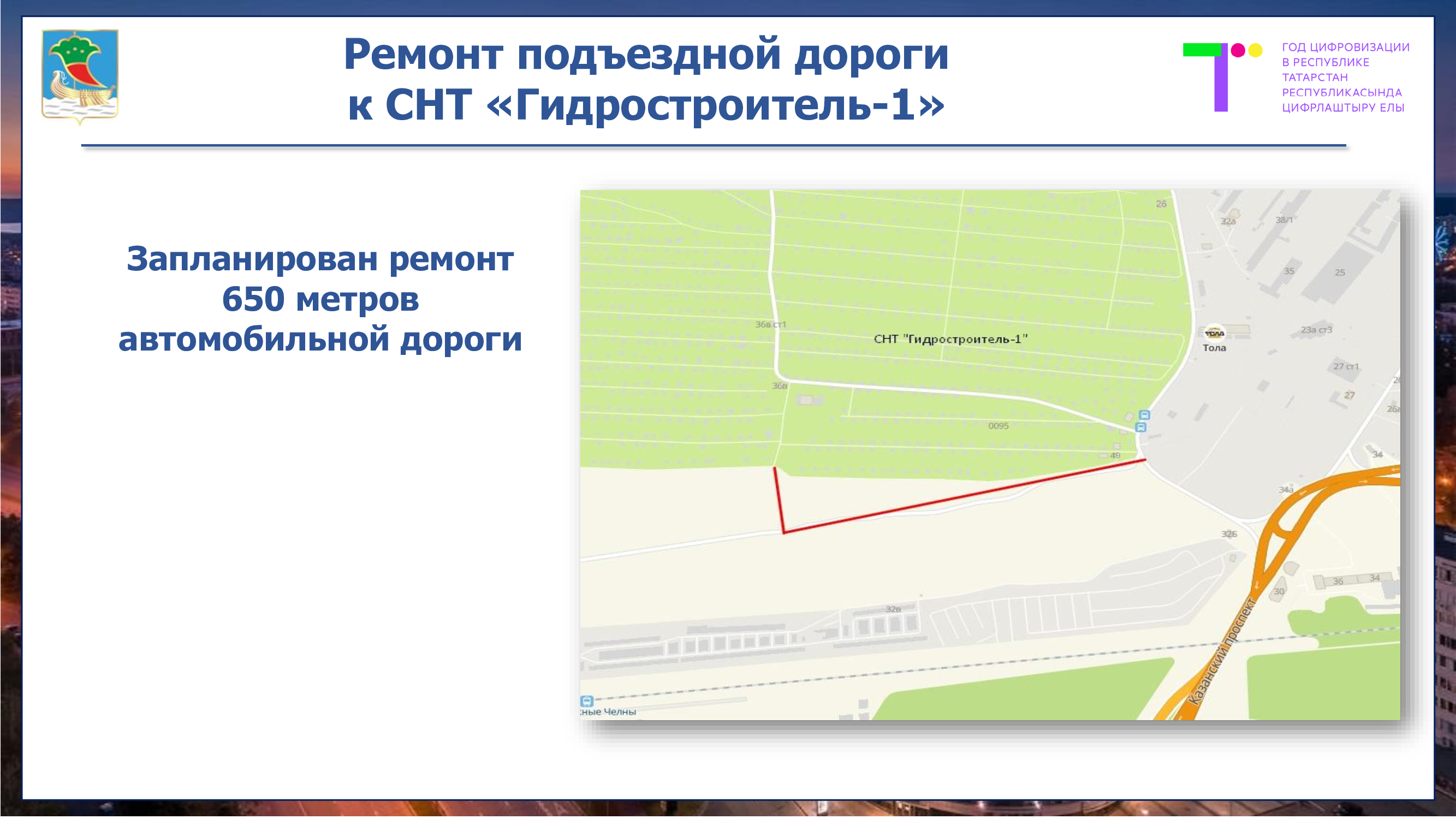 Также в этом году отремонтируют подъездные пути к садовому обществу «Гидростроитель-1».