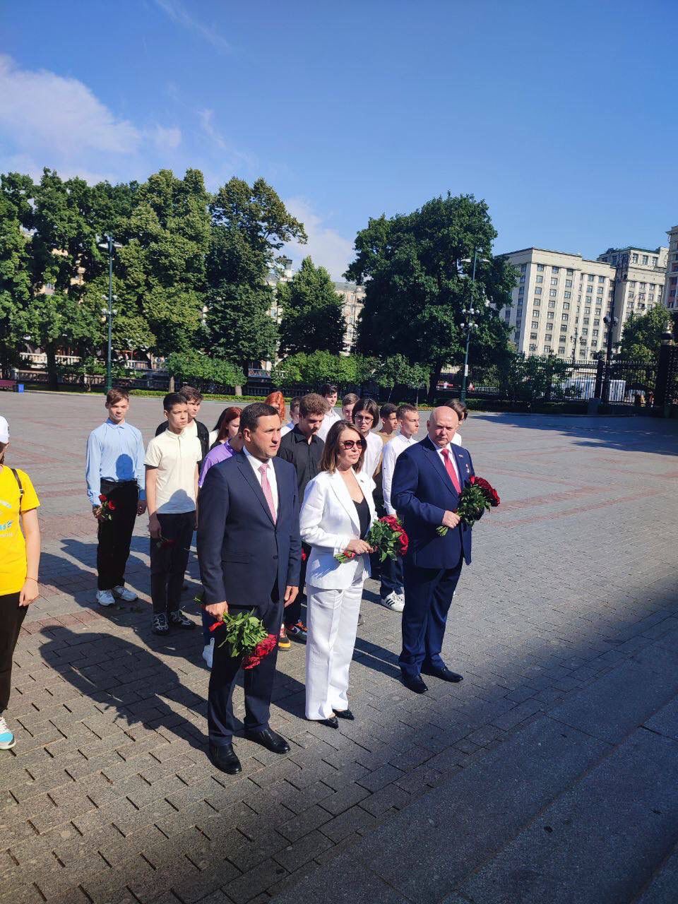 У Могилы Неизвестного солдата несут вахту победители городского конкурса «Лучший часовой Поста № 1». Ребят поддерживают руководитель Исполнительного комитета Фарид Салахов, депутат Государственной Думы РФ Альфия Когогина, начальник управления образования Рустем Хузин.