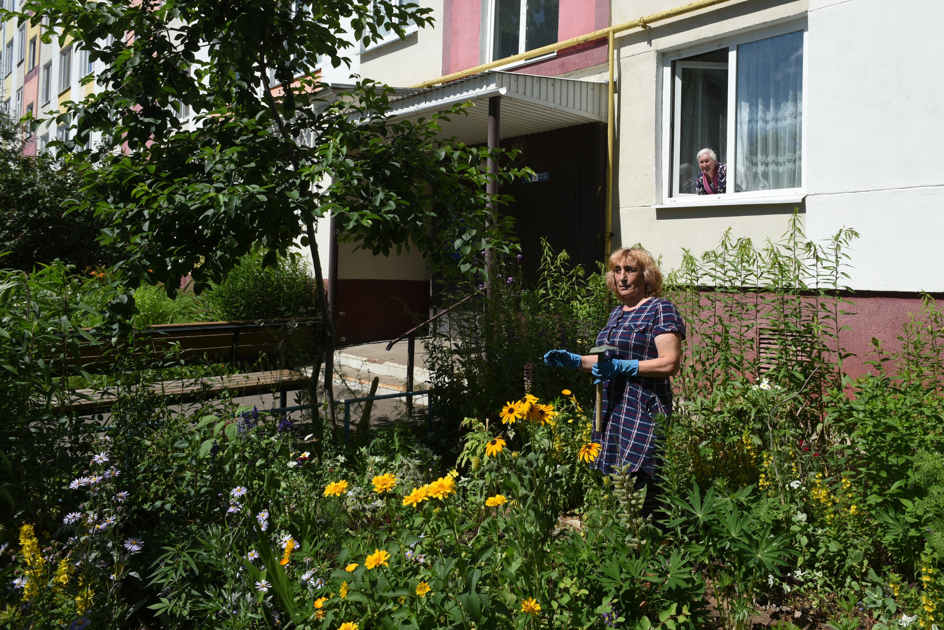 После проведенного ремонта одна из жительниц дома 2/3 Нина Васильевна обустроила палисадник у дома, ранее тут была бетонная площадка. Ее идею поддержали соседи. «Это труд всех соседей: кто-то сажал цветы, кто-то поливал, кто-то давал семена. Вот так получился палисадник. Цветы всех радуют под окнами. Вообще, теперь все нравится во дворе».