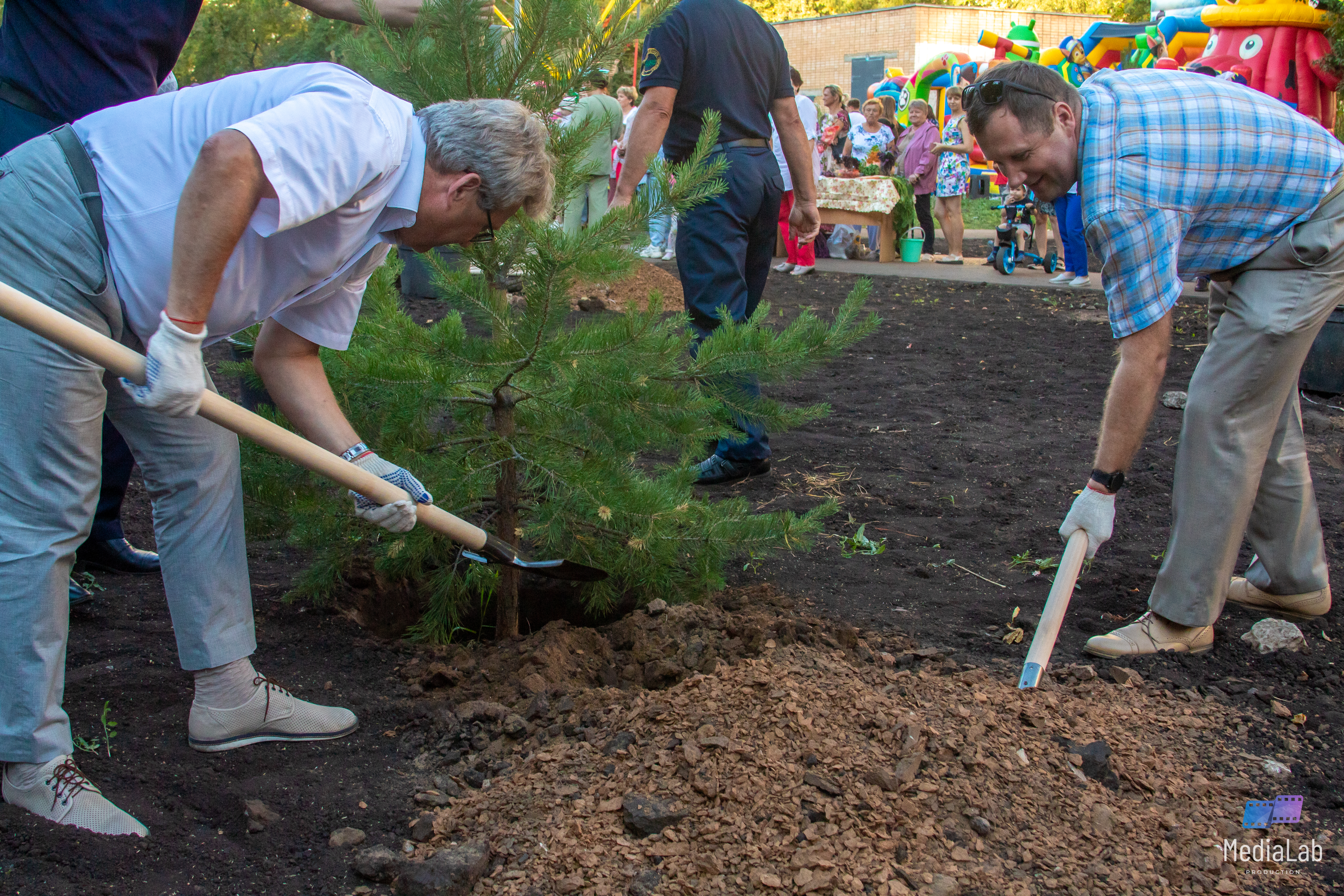 На празднике во дворе дома 32/01, жители микрорайона, совместно с руководством города, депутатами Государственного и Городского Совета посадили деревья  в обновленном дворе, который благоустроен в этом году,  в рамках республиканской программы "Наш двор".
