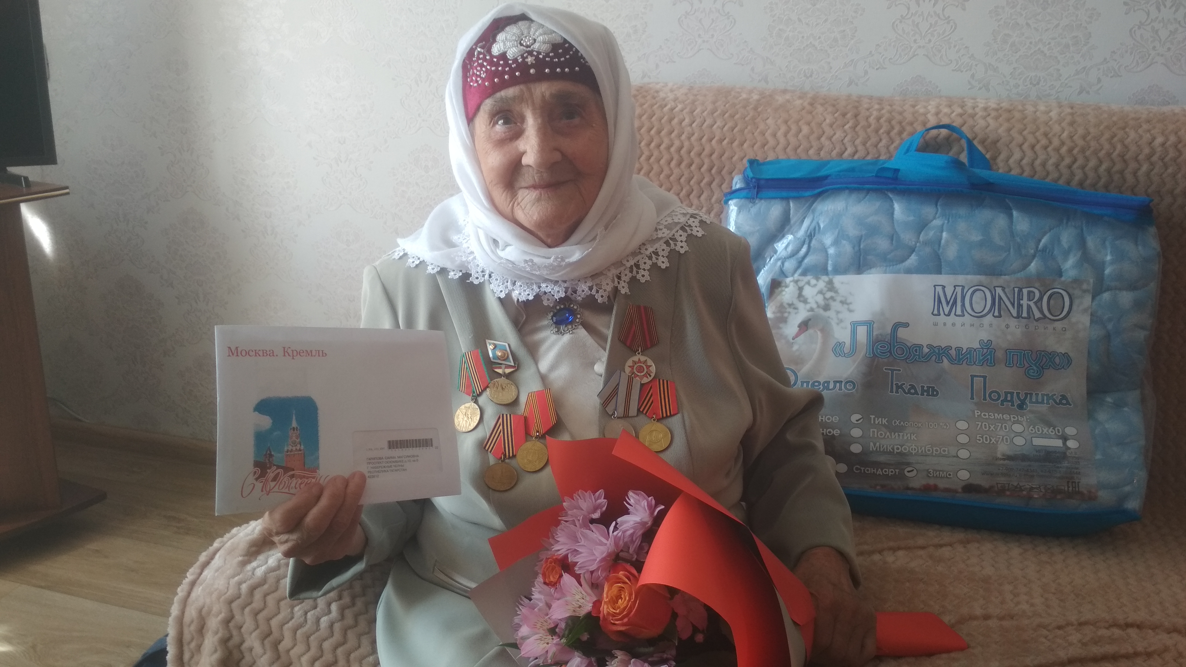 От имени президента РФ Владимира Путина, мэра города Наиля Магдеева поздравление с юбилеем получила ветеран Великой Отечественной войны Гарипова Саима Магсумовна. Ветерана поздравили администрация Центрального района, представители УК «Электротехников», а так же председатель ТОС 11 комплекса Людмила Маликова.
