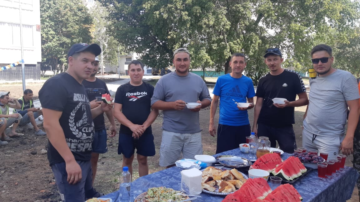 В 54 комплексе для работников подрядных организаций МУП «ПАД» и «Камавтодор», осуществляющих работы в рамках республиканской программы «Наш двор» организовали обед. Строителей угостили пловом и чаем с домашней выпечкой.