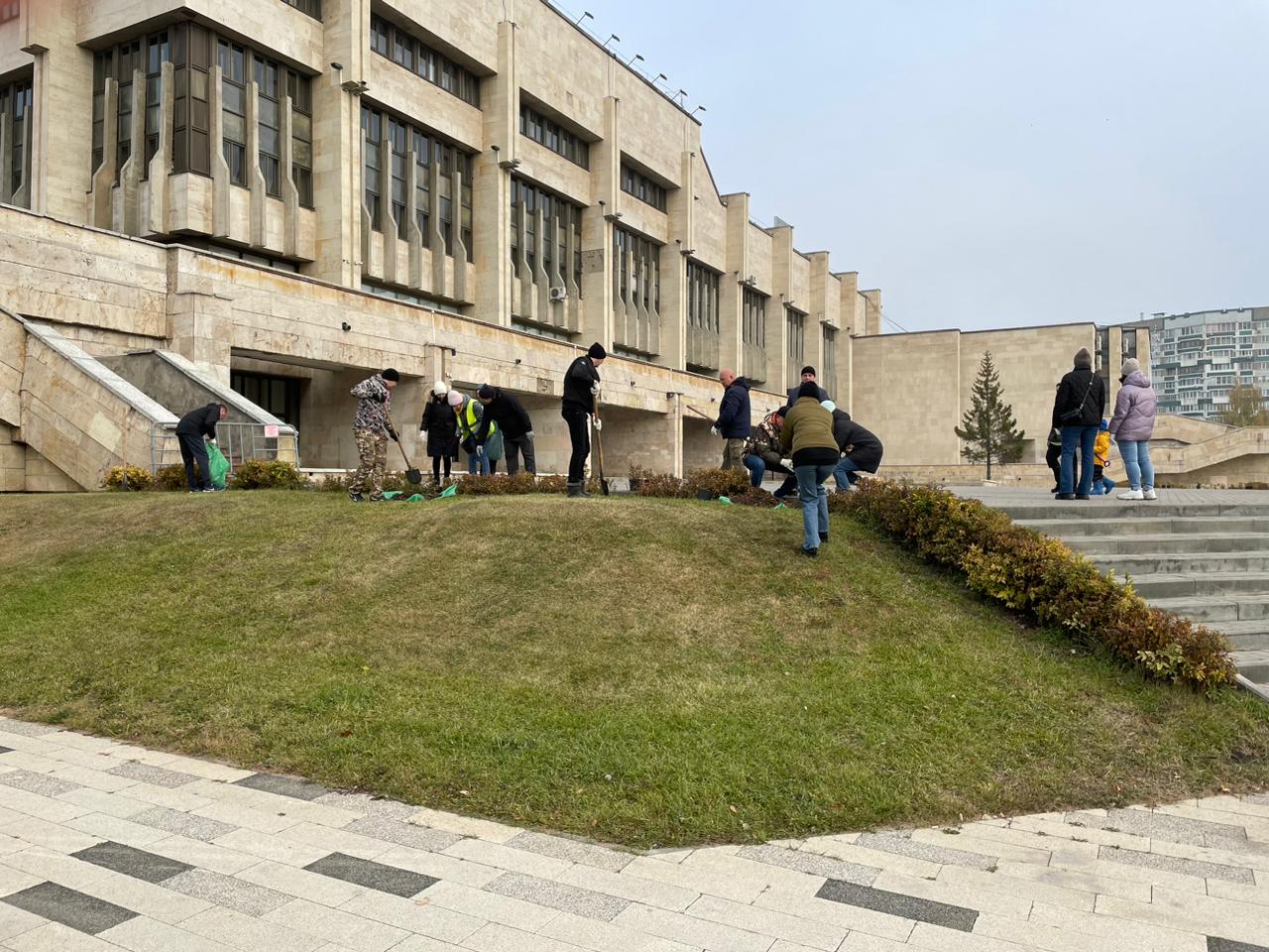 К уборке города присоединились сотрудники Исполнительного комитета, администраций трех районов, предприятий, управляющих компаний и учащиеся школ.