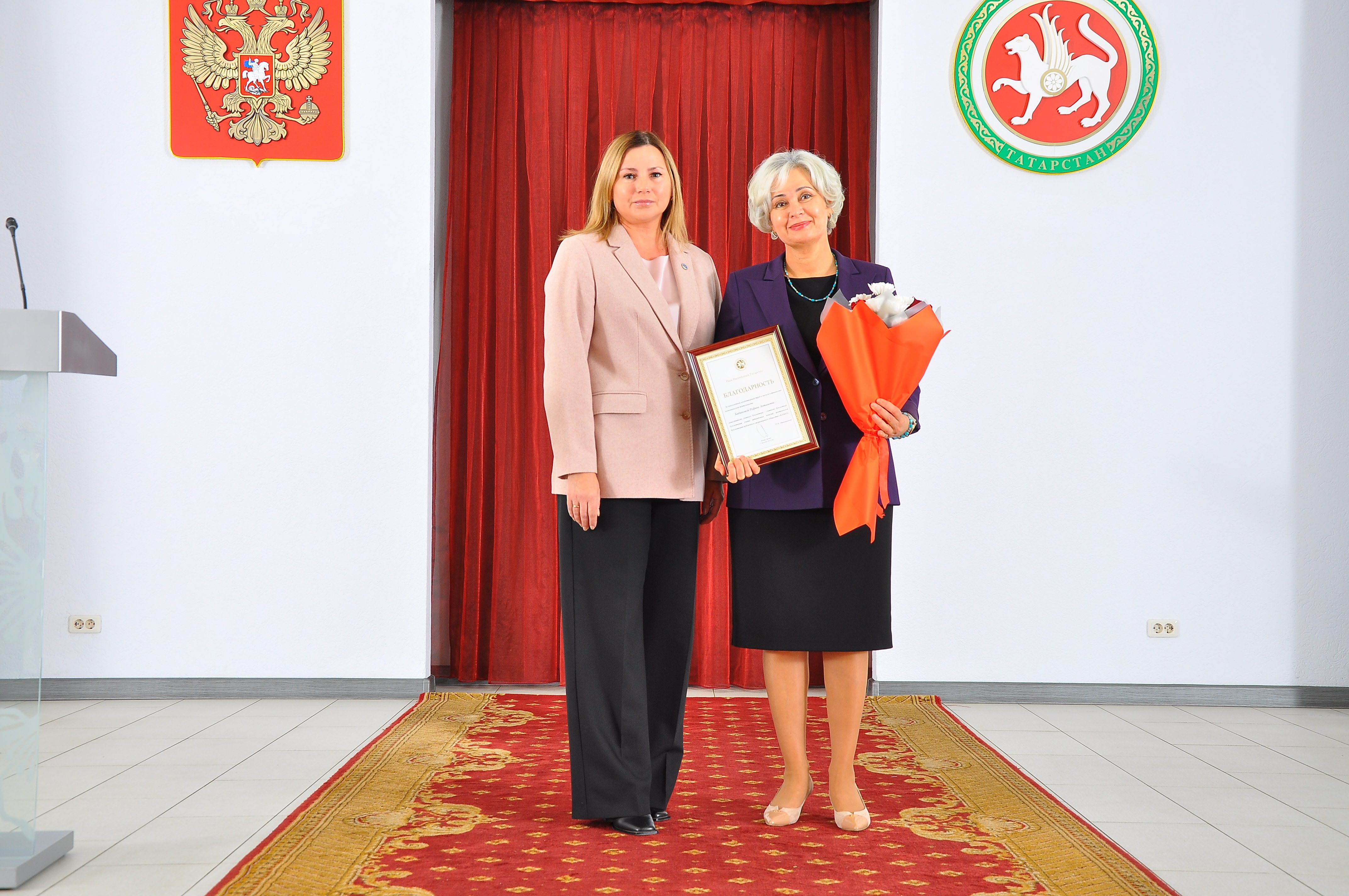 За достигнутые трудовые успехи и многолетнюю добросовестную работу медалью Республики Татарстан «За доблестный труд» награждена Наталья Шустова. За многолетний плодотворный труд и заслуги в финансово-экономической деятельности Благодарность Раиса Республики Татарстан объявлена Руфине Бадыковой и Елене Савченковой.