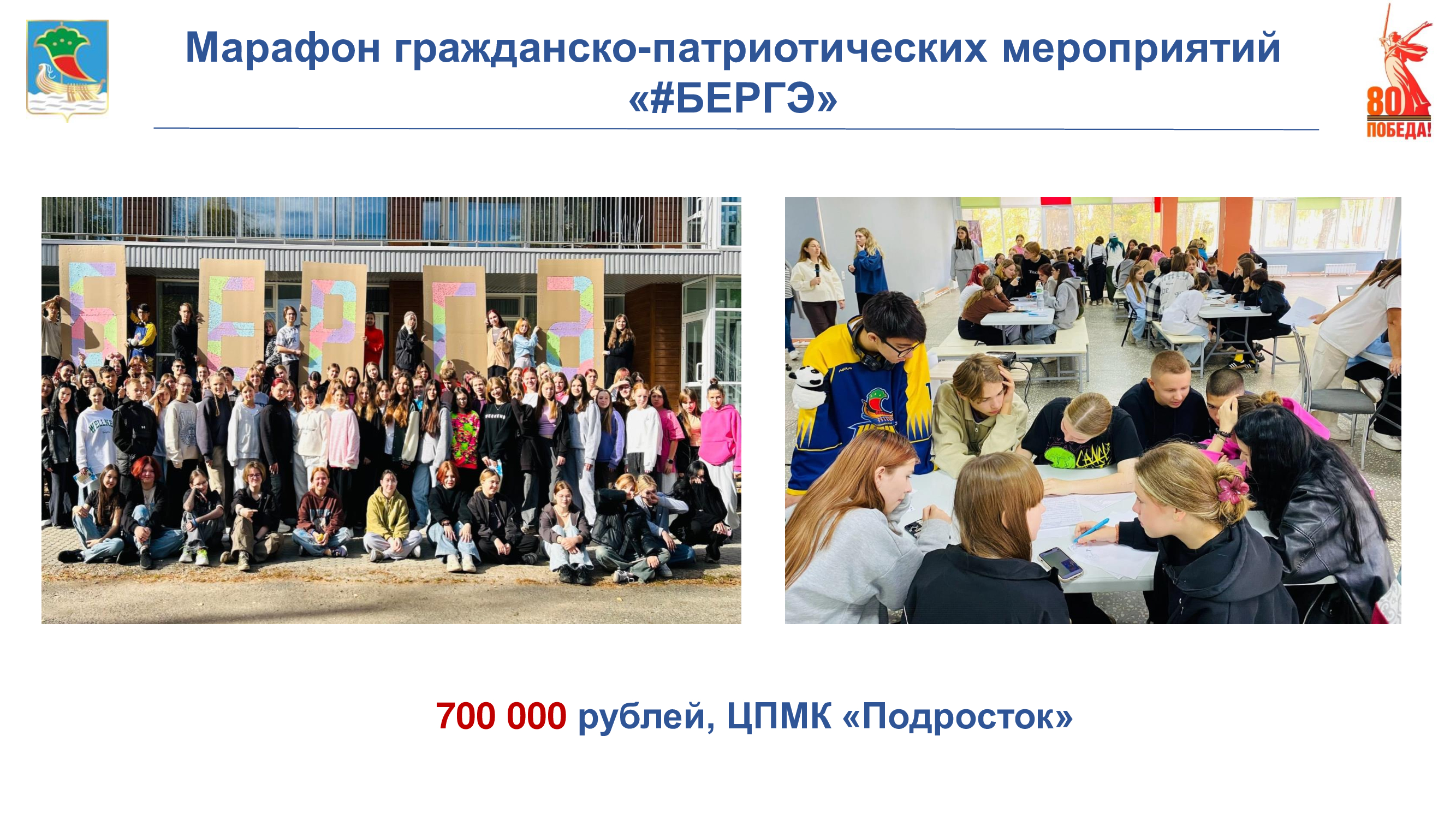 Проект «Марафон гражданско-патриотических мероприятий «#БЕРГЭ» направлен на решение проблем развития патриотизма, формирования и развития патриотического и гражданского сознания молодежи.