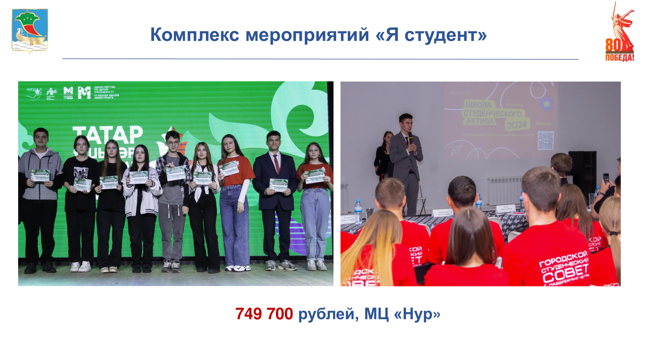 «Комплекс мероприятий «Я студент» реализован для студентов города. В проект вошли такие мероприятия как «Школа студенческого актива», «Форум татарской молодёжи».