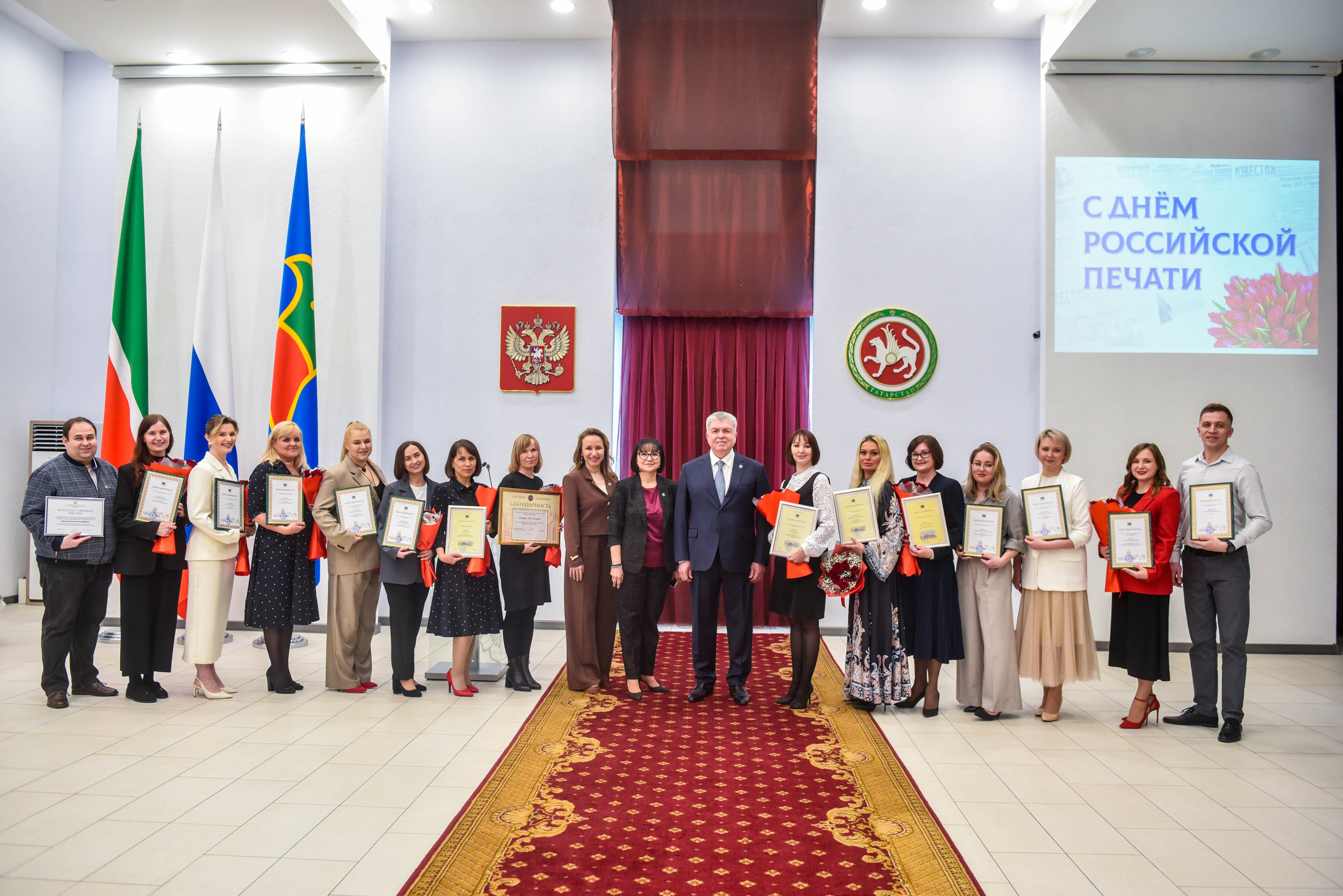 Сегодня во Дворце торжеств состоялось награждение представителей медиа отрасли города Набережные Челны, посвященное Дню российской печати. В торжественном мероприятии принял участие мэр города Наиль Магдеев.