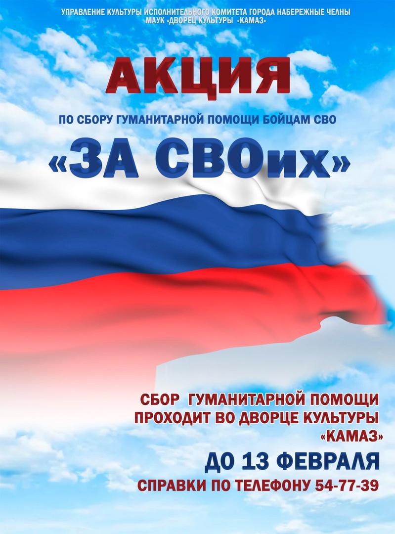 В преддверии Дня защитника Отечества во Дворце культуры «КАМАЗ» стартовала акция по сбору шефской помощи «За СВОих» в поддержку российских военных, выполняющих задачи в зоне специальной военной операции.