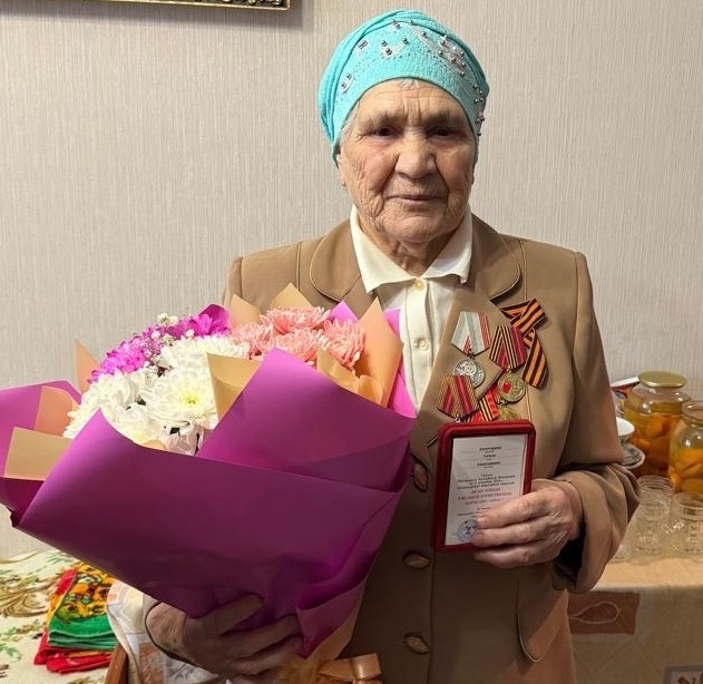 Ветерану Центрального района Сальме Ахметхановне Ахметгареевой вручили юбилейную медаль «80 лет Победы в Великой Отечественной войне 1941-1945 гг.». От имени мэра города Наиля Магдеева ветерана поздравили глава администрации Центрального района Фидарис Хабибуллин и депутат челнинского Городского Совета Андрей Елантьев.