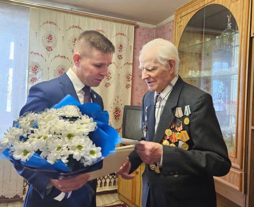 Глава администрации Комсомольского района Ленар Ахметзянов поздравил с вековым юбилеем участника Великой Отечественной войны Владимира Акимовича Иванова.