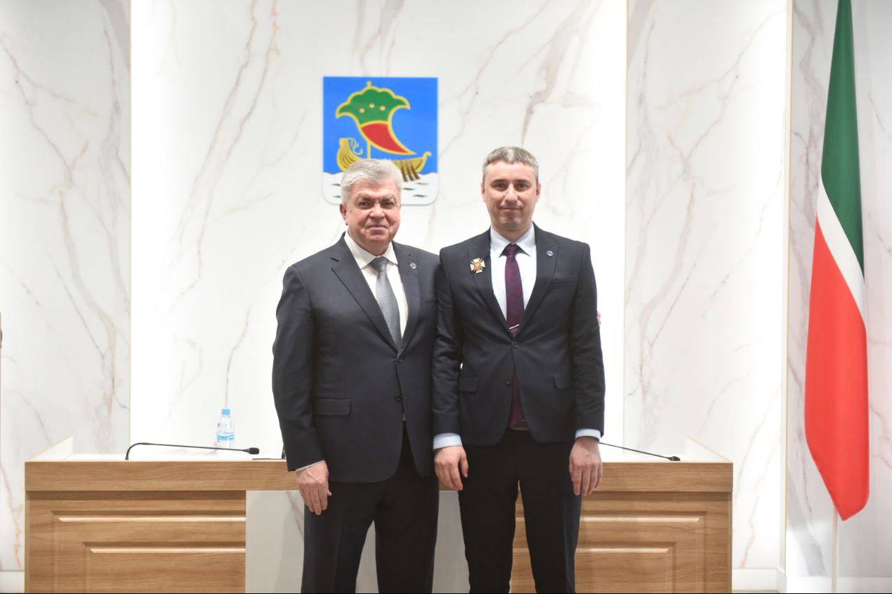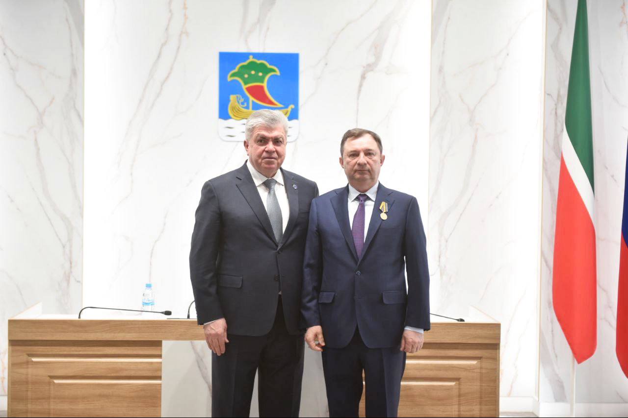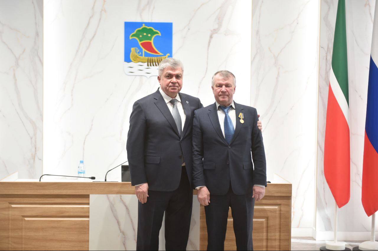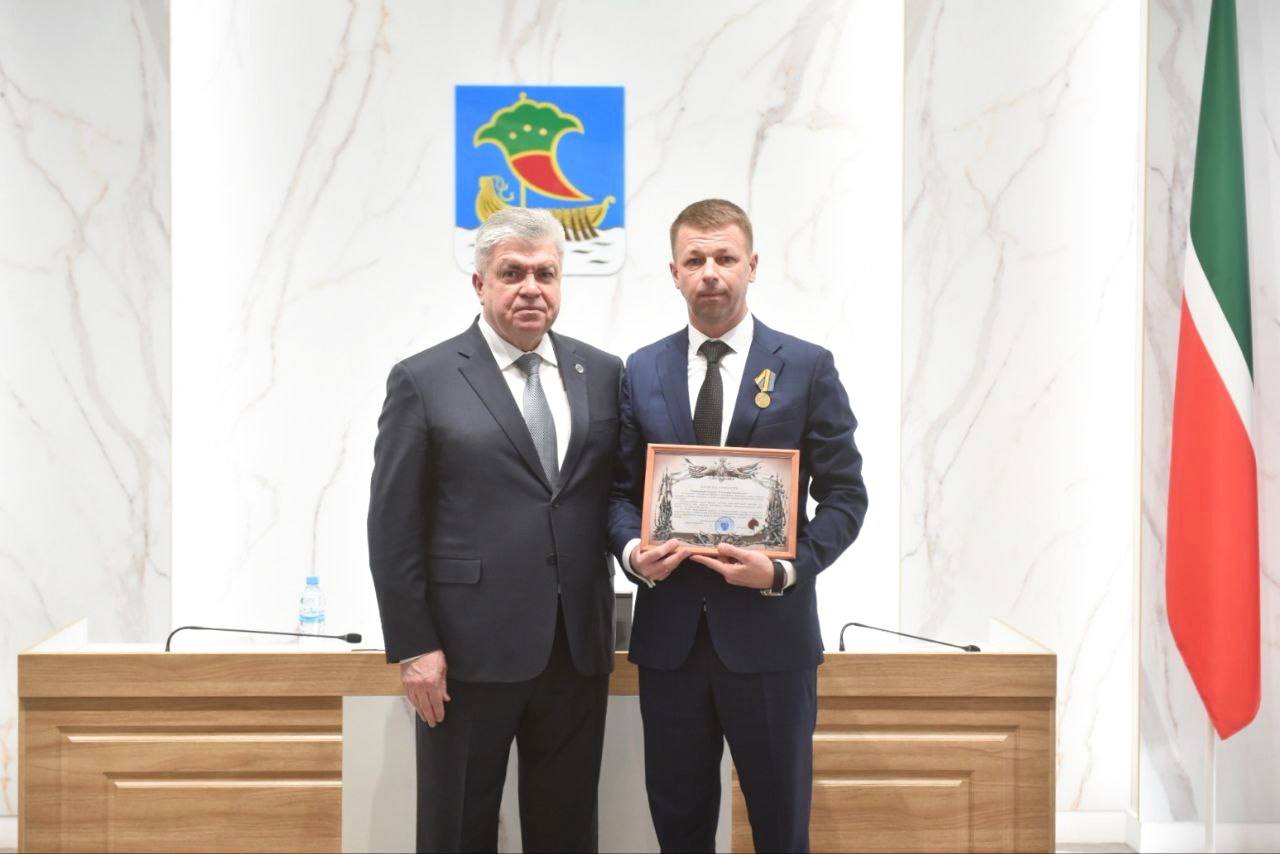 Мэр города Наиль Магдеев сегодня на аппаратном совещании вручил награды ряду руководителей. За большой личный вклад в укрепление боевого содружества и содействие в решении задач Медалью Министерства обороны Российской Федерации «За укрепление боевого содружества» награждены генеральный директор «ТАТПРОФ-Инвест», почетный гражданин города Набережные Челны Сергей Рачков и генеральный директор производственно-коммерческой фирмы «Кардо» Владимир Артюхов. Также он поощрен Благодарностью командира войсковой части 55443, гвардии полковника Дениса Малахова.
